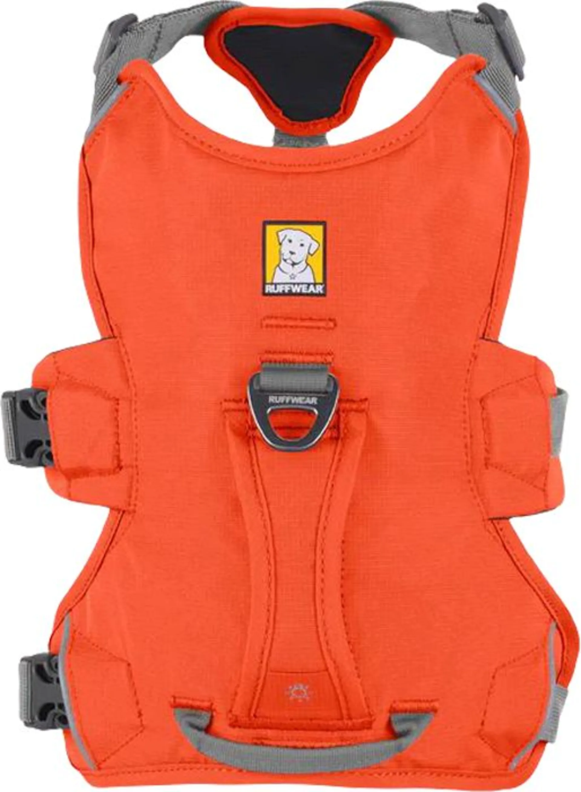Strukturiertes, vielseitiges Geschirr für den Hundekörper. Mit gepolsterter Handschlaufe, gepolstertem Bauchgurt und zwei Befestigungspunkten für die Leine am Rücken.