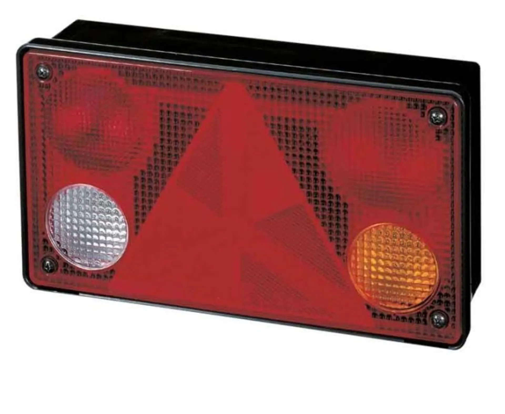 Heckleuchte mit Dreieick-Rückstrahler, 12 V - und 24 V-Glühlampe für waagerechten An- o. Einbau