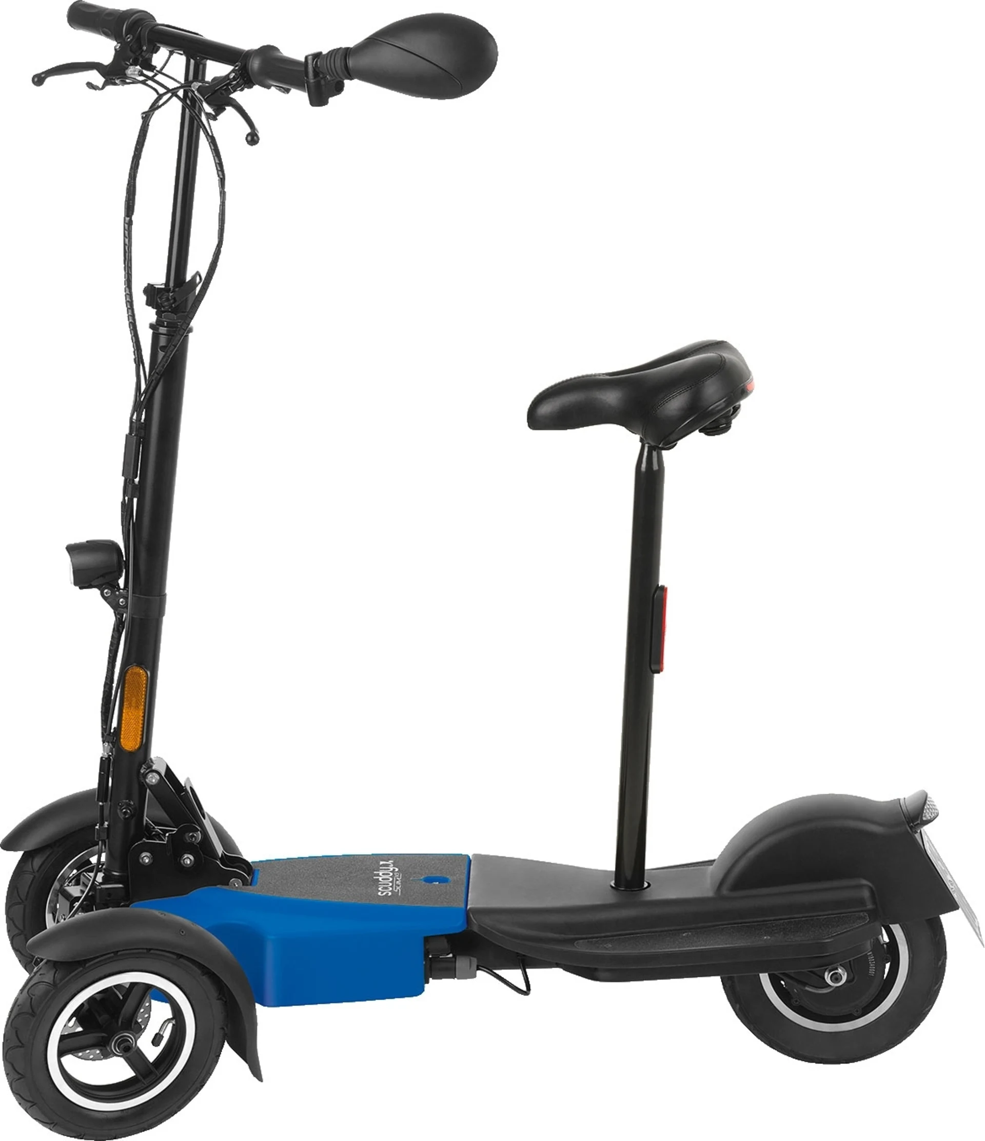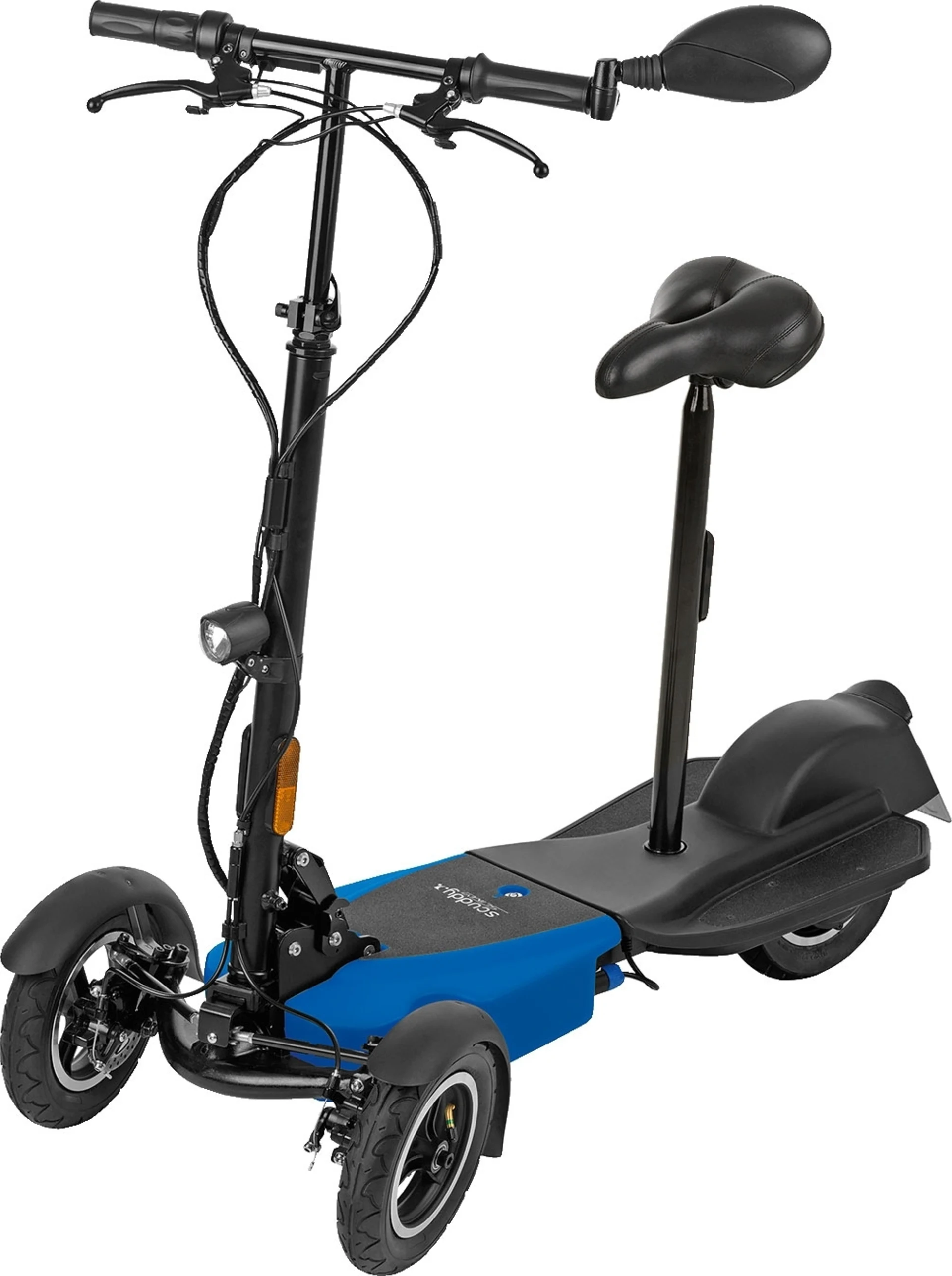 Der Akku des Rollers ist zudem äußerst umweltfreundlich, da dieser eine geringe Geräuschentwicklung hat und keinerlei Schadstoffe ausstößt. Durch die die 3-rädige Konstruktion besitzt der Scooter einen eigenständigen, kippsicheren Stand und kommt ohne zusätzlichen Seitenständer aus. Die abnehmbare Satteleinheit macht das Fahren vom entspannten Sitzen bis hin zum sportlichen Cruisen im Stehen möglich. Die Möglichkeiten sind grenzenlos! Der Roller eignet sich perfekt für Städtetrips, den Weg zum Arbeitsplatz (kostenfreier Transport in Bus und Bahn), sämtliche Wege auf dem Campingplatz uvm.