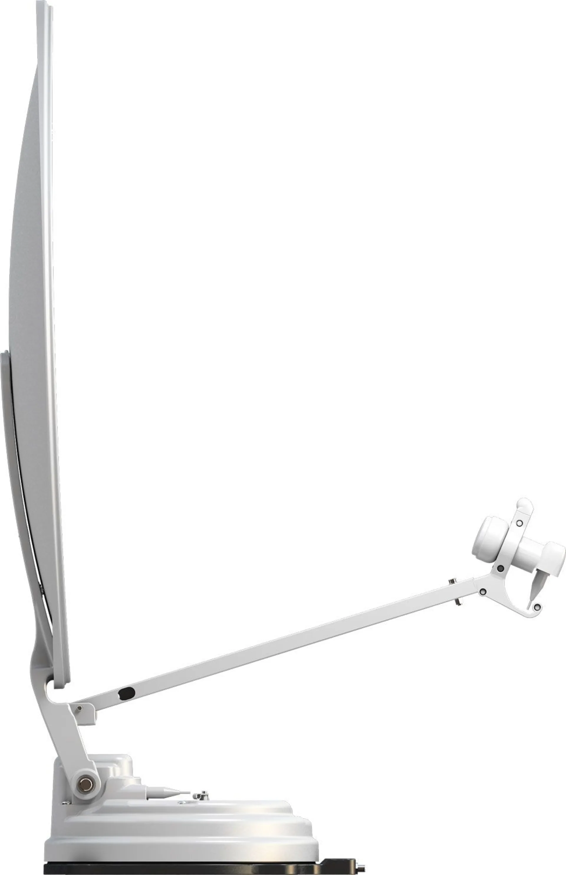 Die Snipe Dish kann komplett eingeklappt werden wenn sie nicht benötigt wird oder während der Fahrt bei Wohnmobilen. Die Größe des Reflektors erlaubt den Empfang vieler Satelliten auch im Grenzbereich wie z.B. Turksat 42°Ost und natürlich alle gängigen europäischen Satelliten in hervorragender Qualität. Die Satellitenwahl geschieht am Steuerteil und dauert nur Sekunden. Lästiges auspacken, aufstellen und einrichten entfällt komplett. Sie benötigen für den Satellitenempfang ein geeignetes TV Gerät oder einen Satellitenreceiver.