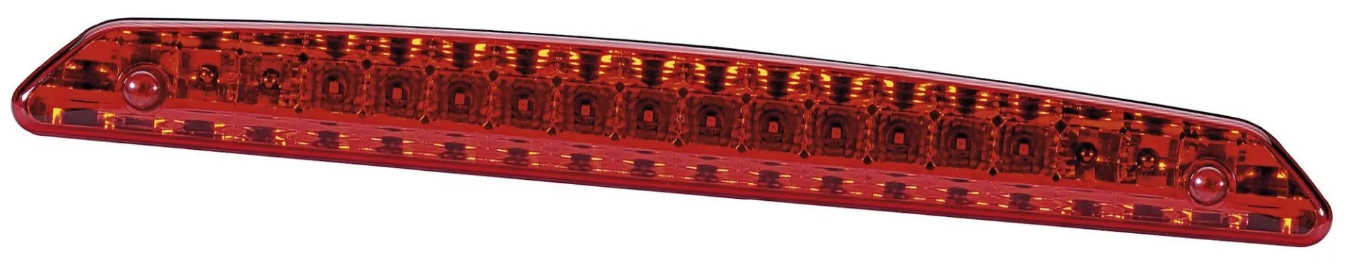Für waagrechten Anbau, in brillanter Optik, mit 3D-Tiefenwirklung durch Einbettung jeder LED in einen separaten Reflektor, mit 200mm Leitung. Rote Lichtscheibe mit Gummiunterlage. Stromaufnahme = ca. 0,15A.