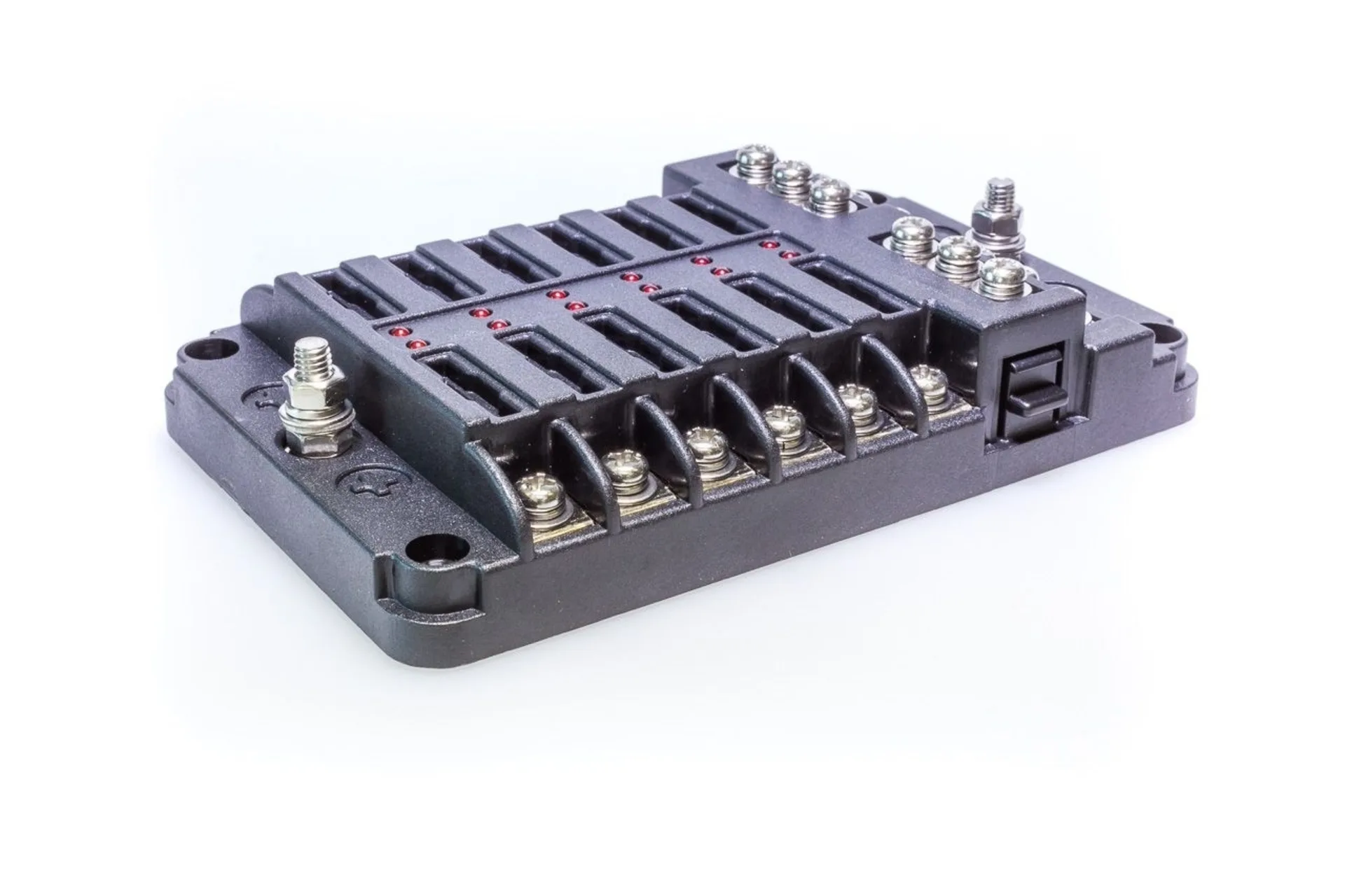 12-fach einzeln abgesichert (Sicherungen nicht im Lieferumfang)