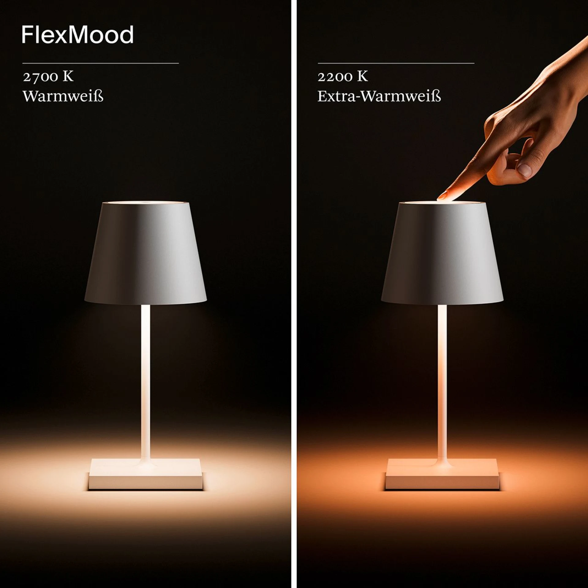 - Touch-Dimmer mit zwei Farbtemperaturen (2.200 K und 2.700 K)