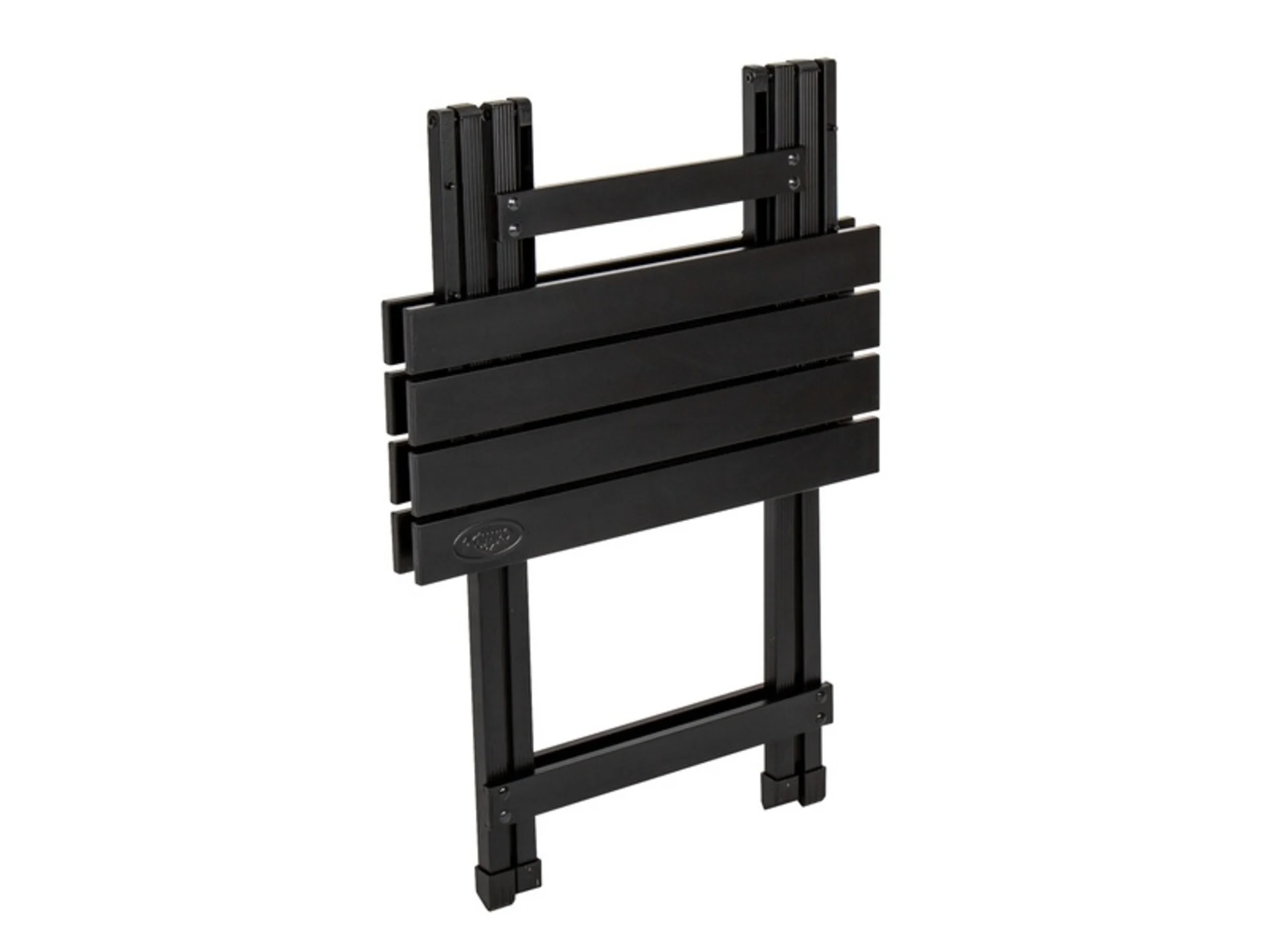 Sehr kompakter und leichter Klapptisch, mit einem Handgriff aufzubauen. Ideal auch als Beistelltisch für Balkon und Terrasse. Gestell und Platte aus Aluminium, daher wetterfest. 3 Quertraversen für beste Stabilität und Belastbarkeit.
