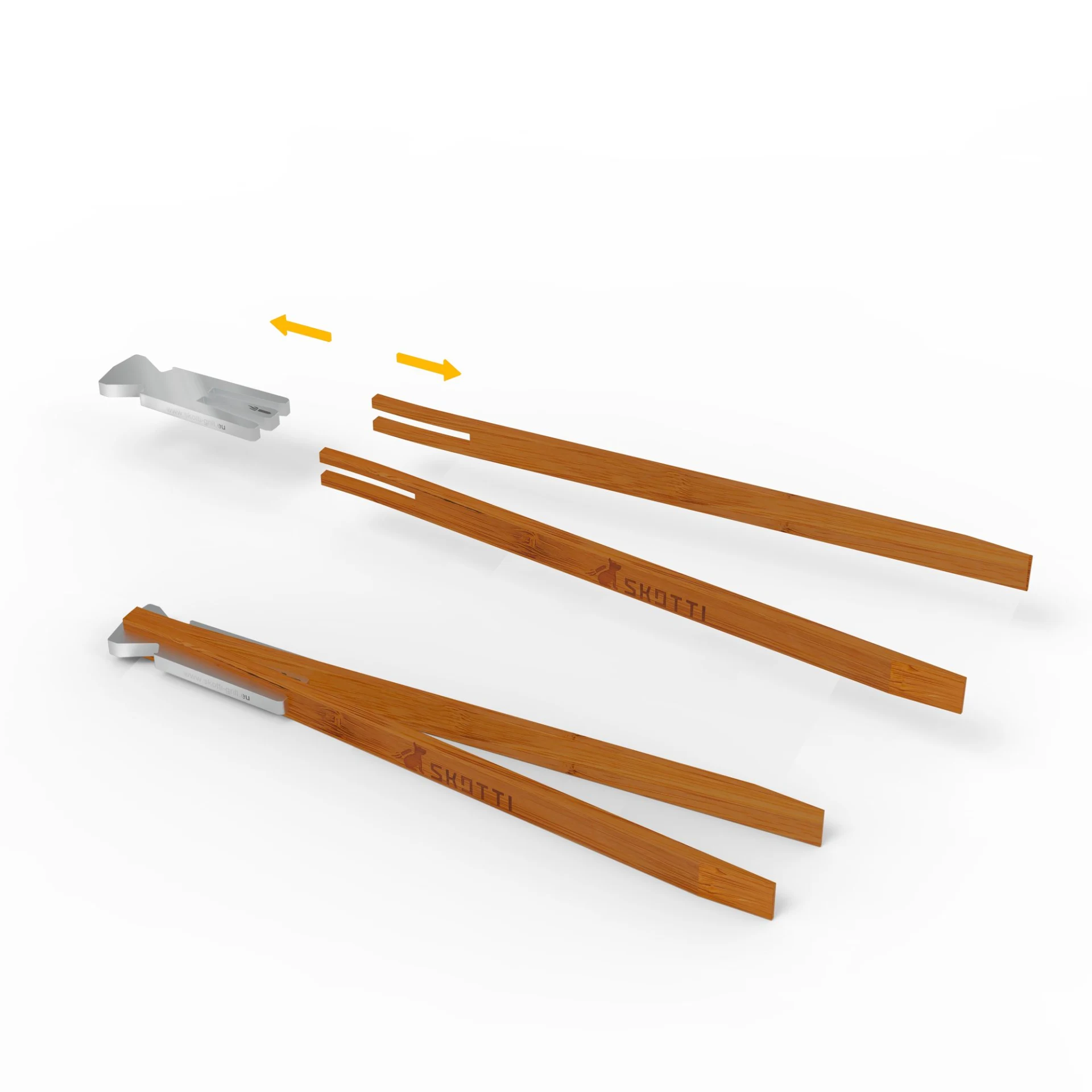Die Grillzange für Deinen SKOTTI Grill: zerlegbar wie alles von SKOTTI, aus stabilem Bambusholz und hochwertigem Aluminium gefertigt. Und damit Du es bequem hast: mit integriertem Flaschenöffner im Kopfteil.