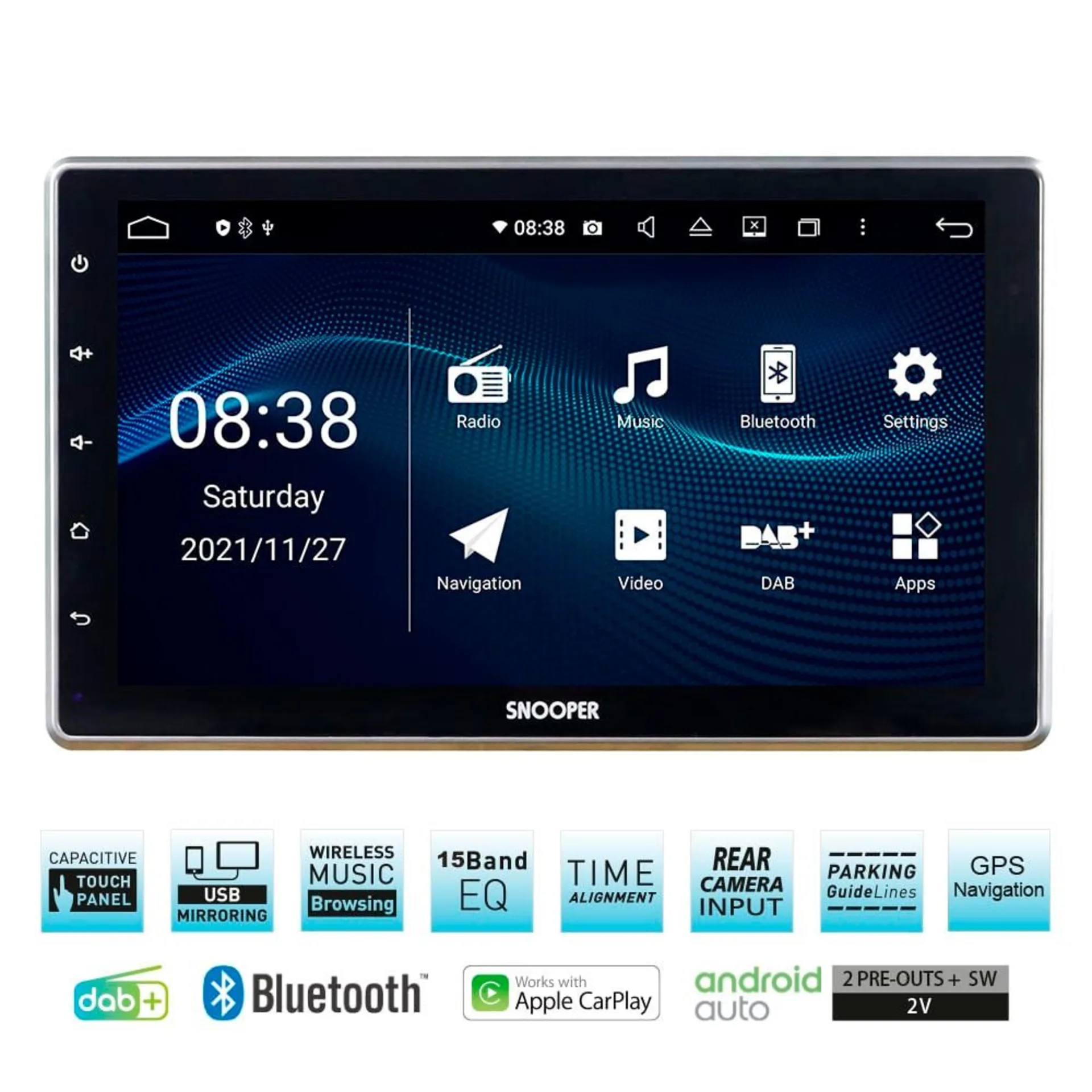 USB Mirroring zeigt Ihr Android-Telefon auf dem großen Bildschirm des Snooper-Headunits an - bei beeindruckendem Sound. Sie können Ihr Android -Telefon sogar über den Bildschirm der Geräte steuern. Installieren Sie einfach die kostenlose App “EasyConnection” auf Ihrem Smartphone und verbinden es mit den Geräten über