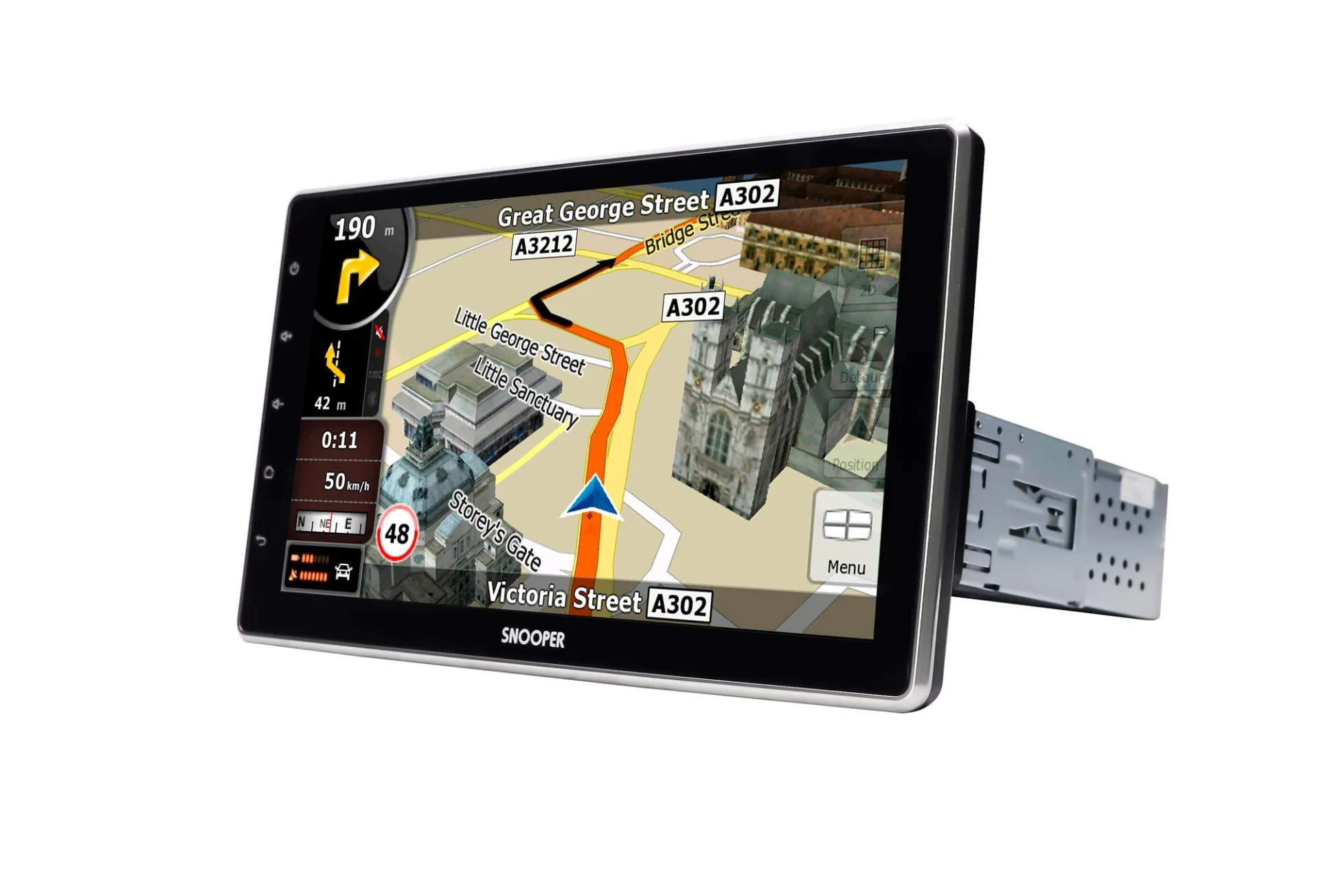 Der SNOOPER-Headunits unterstützen auch die Navigationslösung iGO. Mit vorinstallierten iGO Karten, integrierter Navigationsfunktion und externer