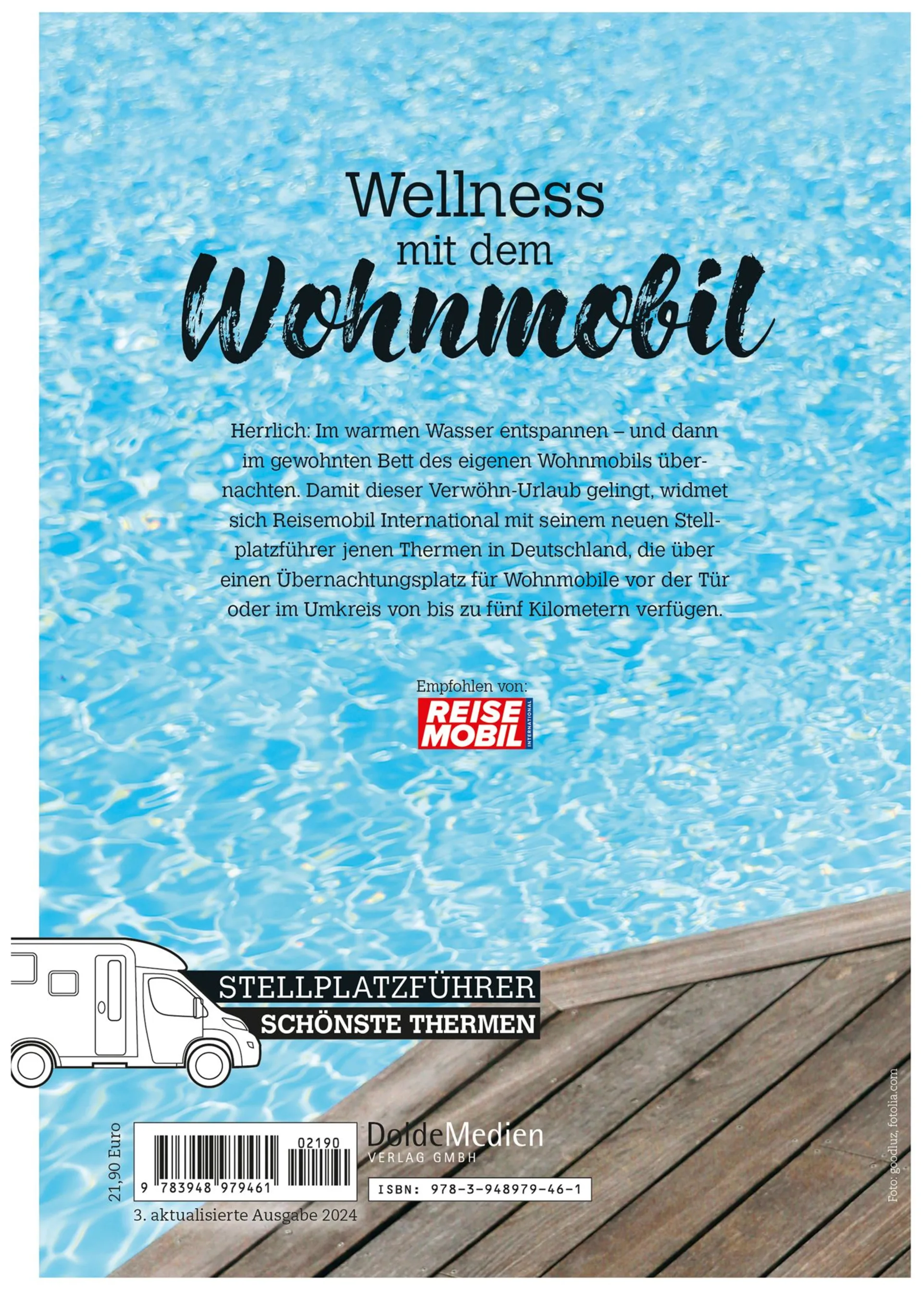 Wellness mit dem Wohnmobil – der Stellplatzführer schönste Thermen (komplett aktualisierte Neuauflage 2024). Herrlich: Im warmen Wasser entspannen, den Stress des Alltags hinter sich lassen – und dann im gewohnten Bett des eigenen Wohnmobils übernachten. Damit dieser Verwöhn-Urlaub funktioniert, widmet sich die Redaktion von „Reisemobil International“ mit seinem neuen Stellplatzführer jenen Thermen in Deutschland, die über einen Übernachtungsplatz für Wohnmobile vor der Tür oder im Umkreis bis zu fünf Kilometern verfügen.