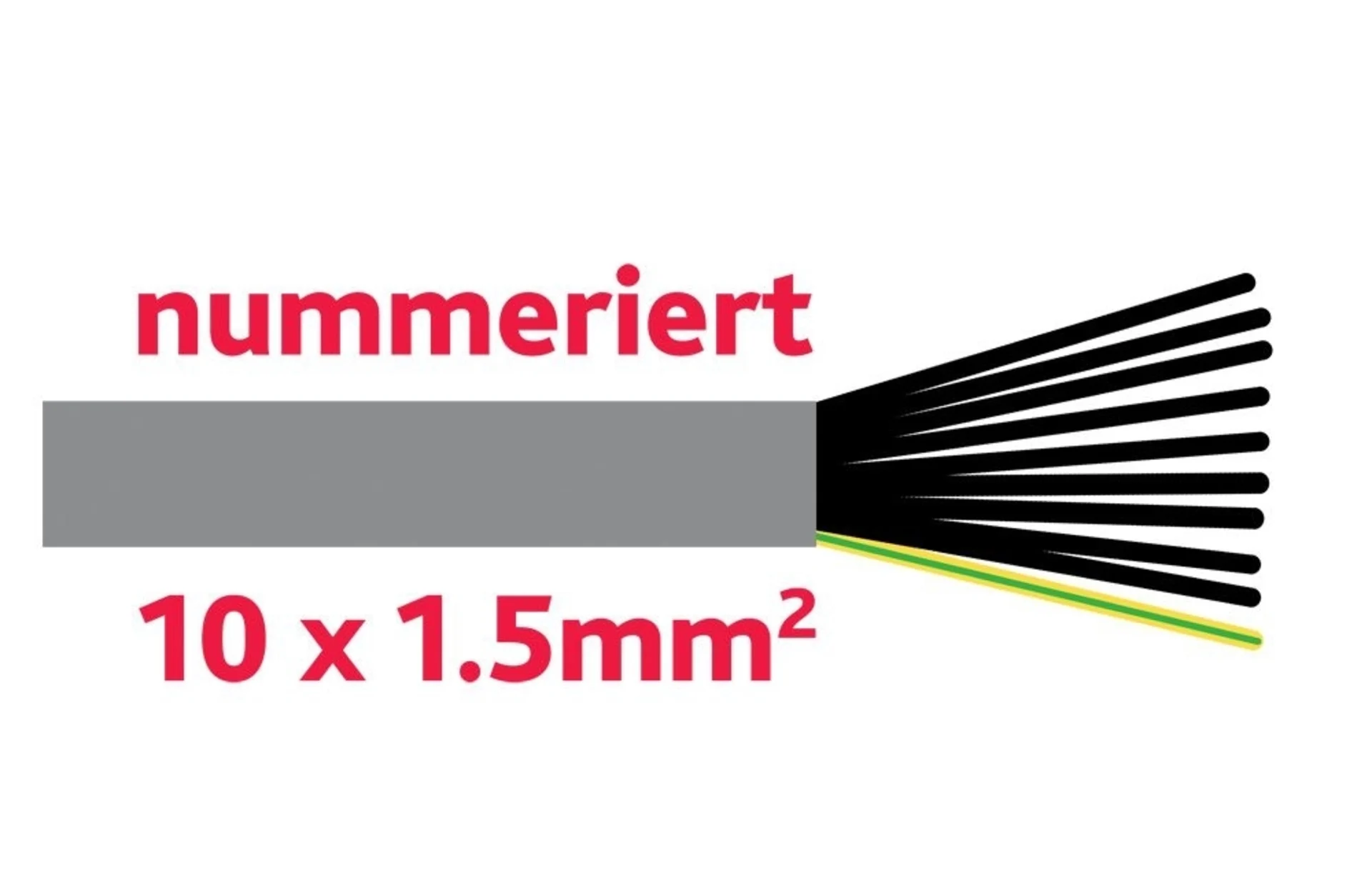 Adern schwarz, nummeriert + 1 Schutzleiter grün/gelb