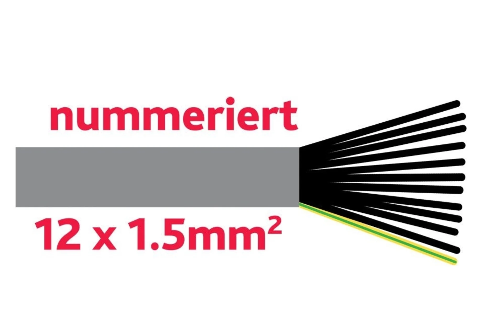 Adern schwarz, nummeriert + 1 Schutzleiter grün/gelb