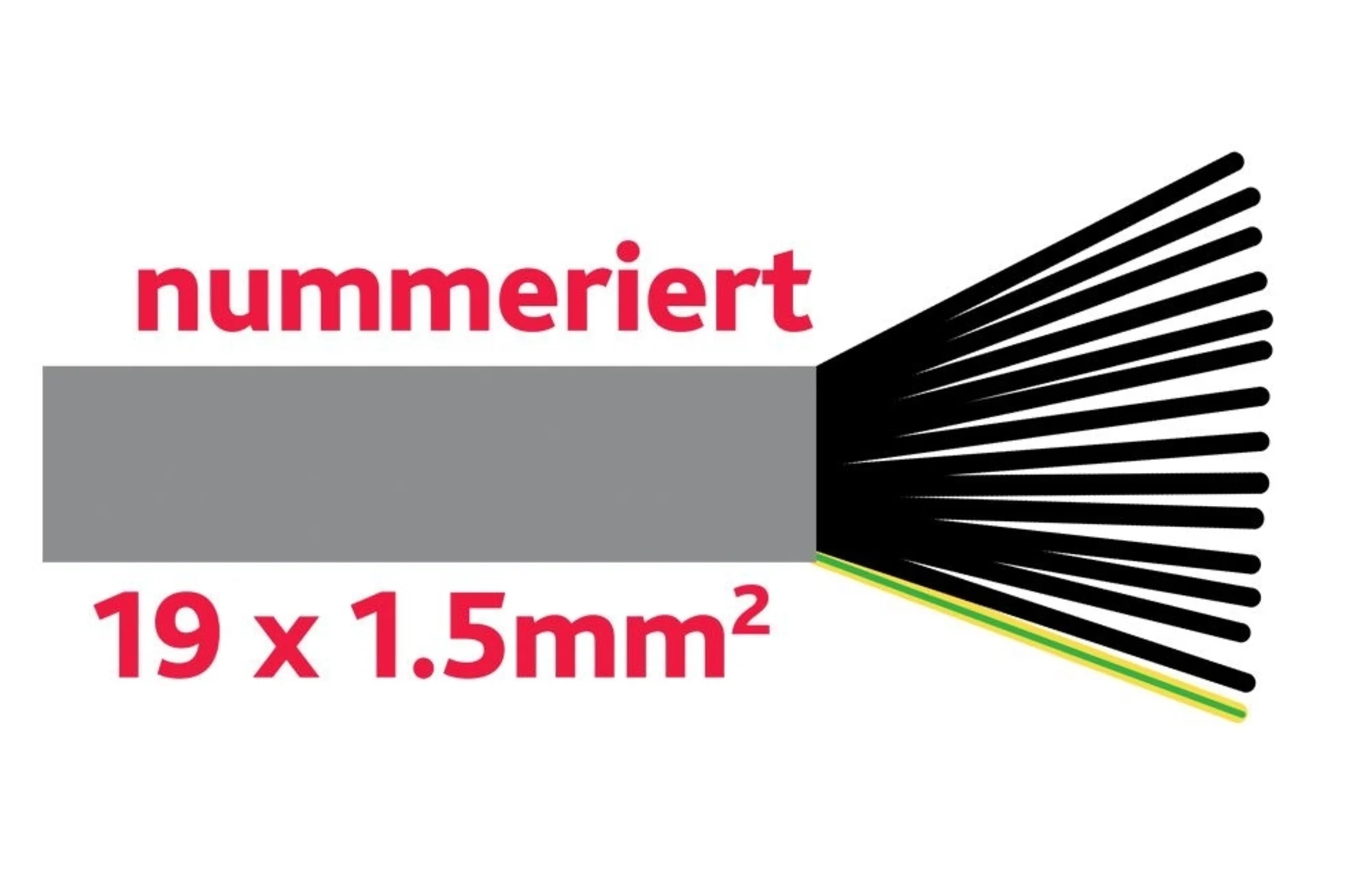 Adern schwarz, nummeriert + 1 Schutzleiter grün/gelb