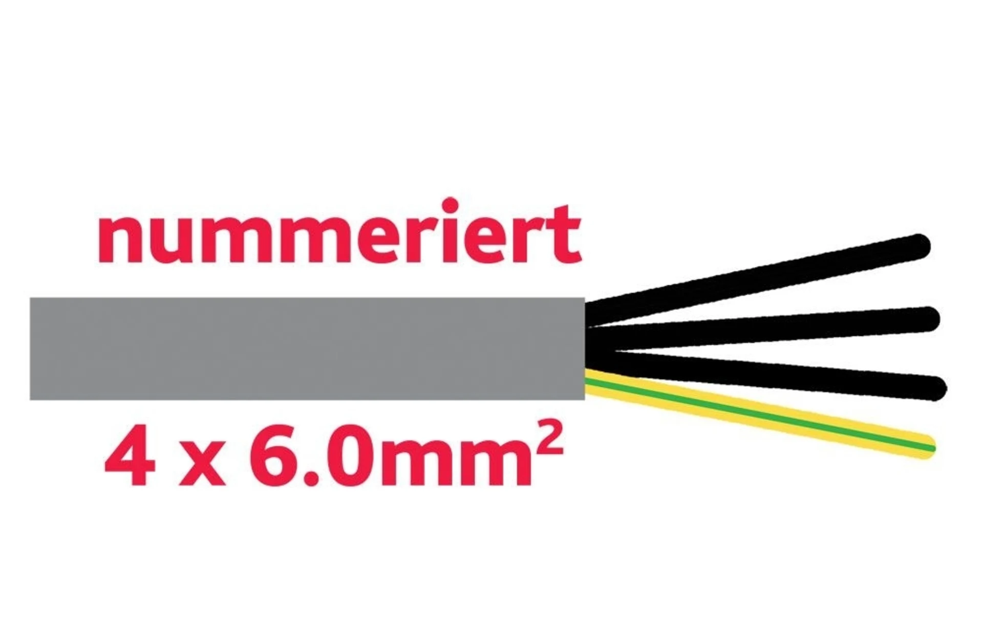 Adern schwarz, nummeriert + 1 Schutzleiter grün/gelb