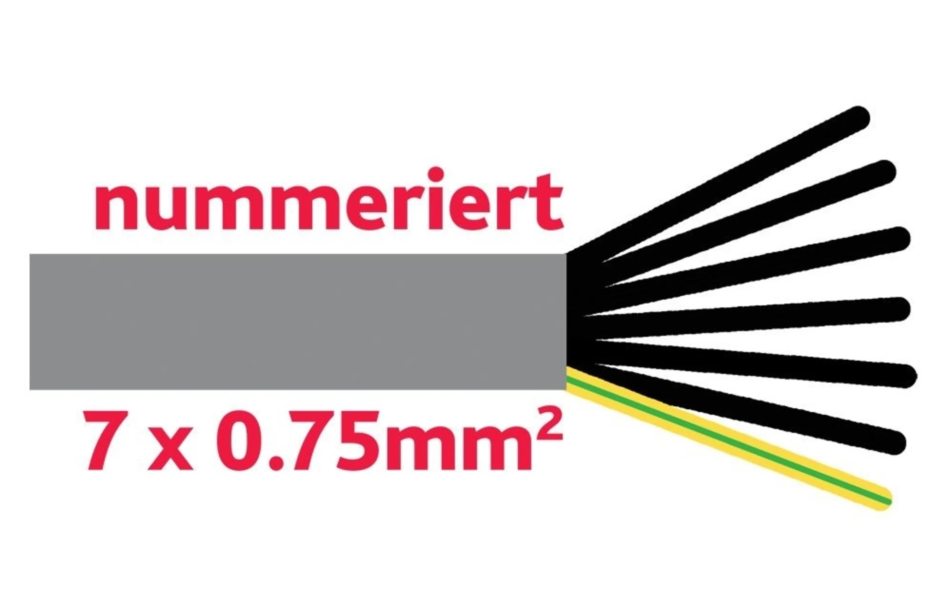 Adern schwarz, nummeriert + 1 Schutzleiter grün/gelb