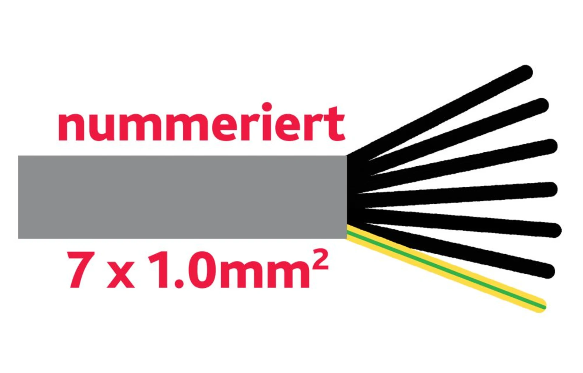 Adern schwarz, nummeriert + 1 Schutzleiter grün/gelb