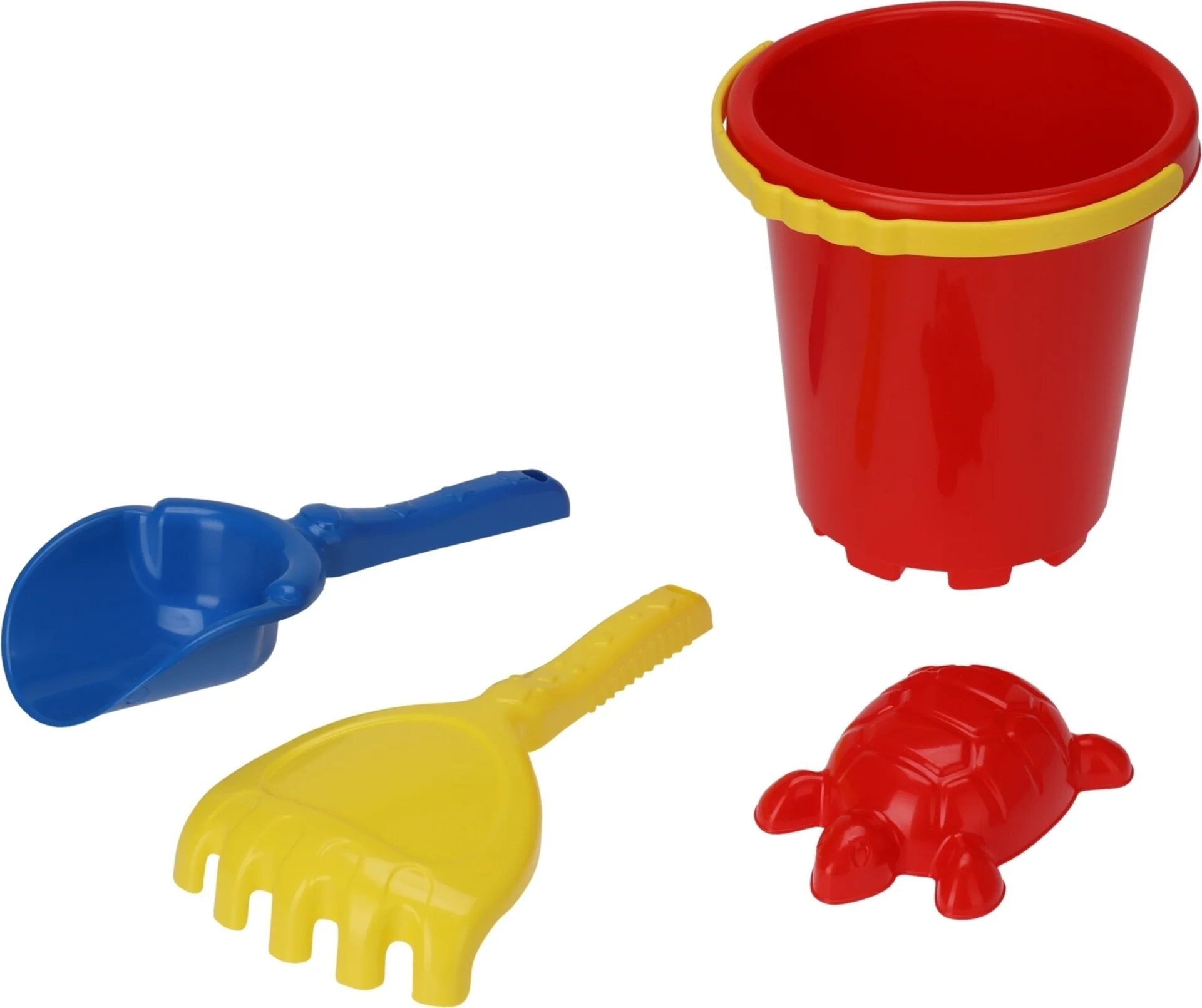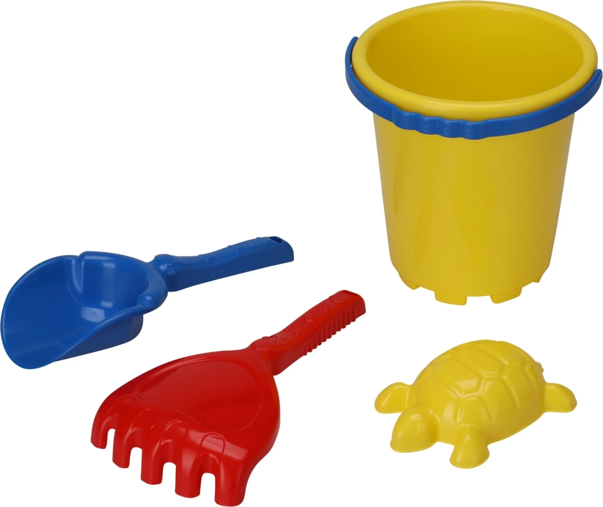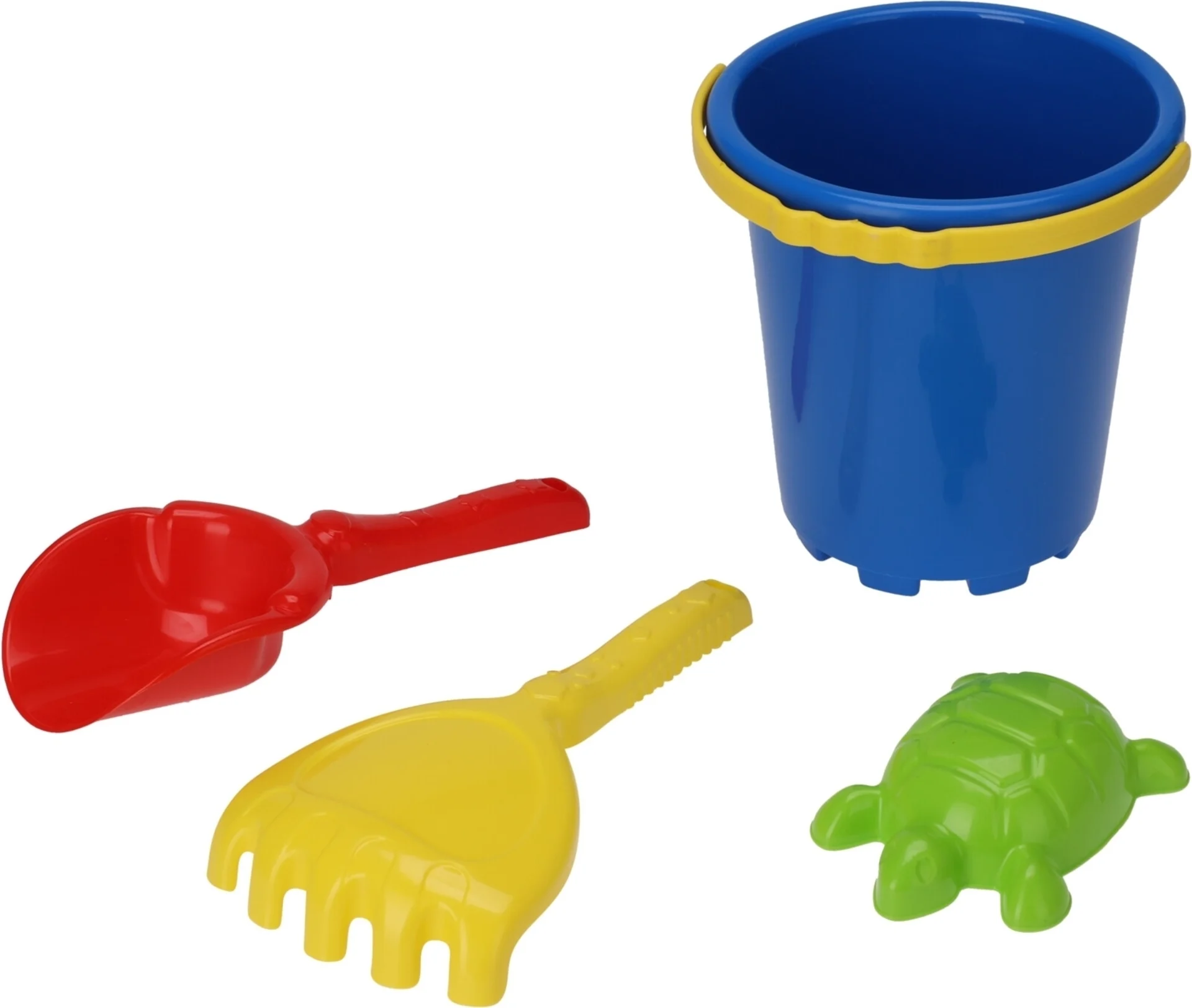 Mit dem Strandspielzeug 4er Set haben Sie alles, was Sie für einen gelungenen Tag am Strand brauchen! Das Set besteht aus einem Eimer, einer Schaufel, einem Rechen und einer Schildkrötenform. Jedes Stück ist mit unserem einzigartigen Design versehen und in den Farben Blau, Rot und Gelb erhältlich. Das Set wird in einem 145x145x310mm grossen Netz geliefert - perfekt für stundenlangen Spielspass am Strand. Hinweis: Die Farbauswahl ist bei diesem Produkt nicht möglich.