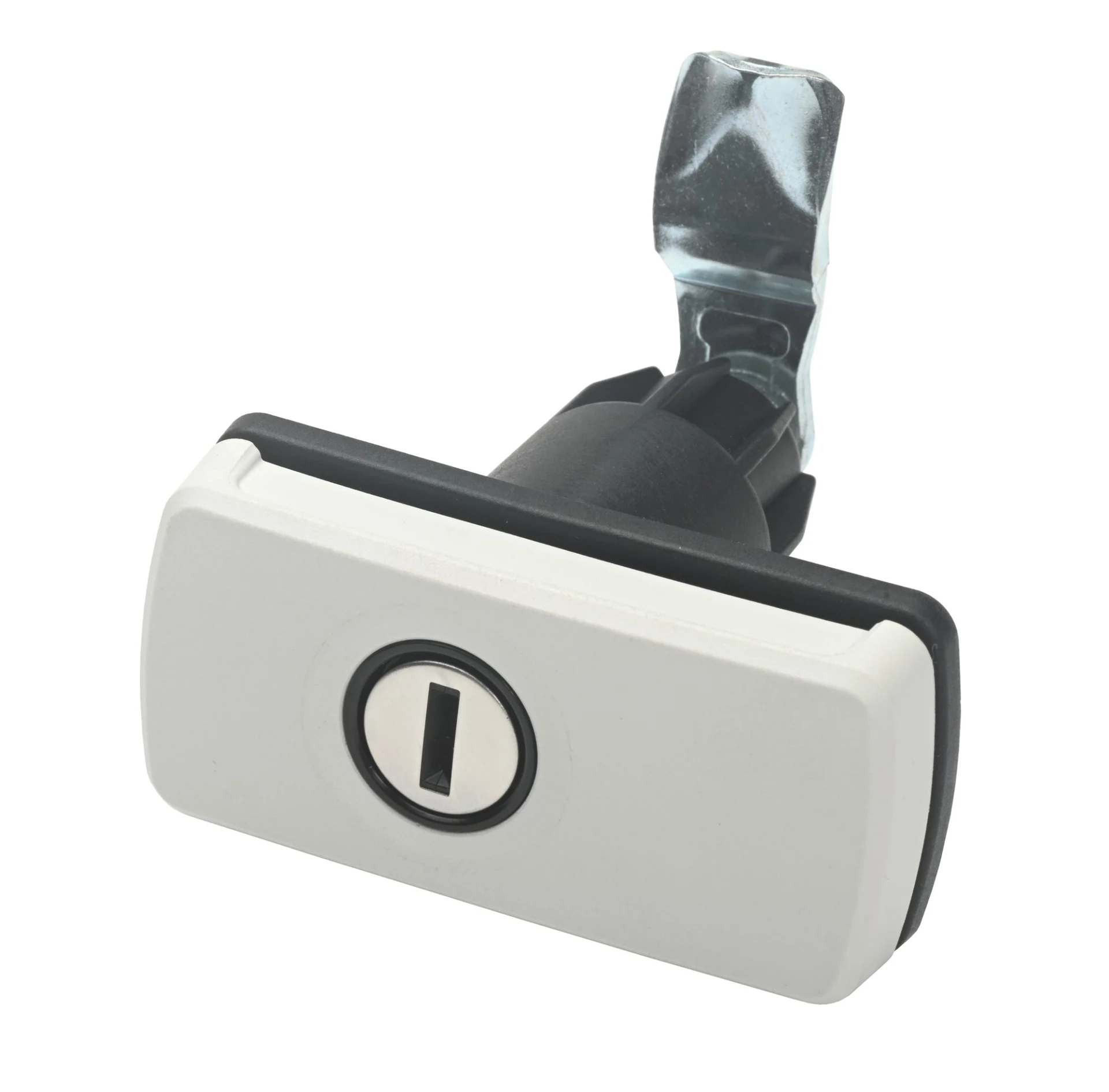 Alsolut wasserdichter und korrosionsgeschützer Kompressionsverschluss.Der Riegel zieht durch Drehen des Griffes um 180 Grad, bei einem Spannweg von 6 mm, die Klappe an die Dichtung. Für Türblattstärke von 26-45 mm. Wird mit Montageplatte und Riegel geliefert. Schließzylindereinsatz aus Metall für HSC- Steckzylinder.