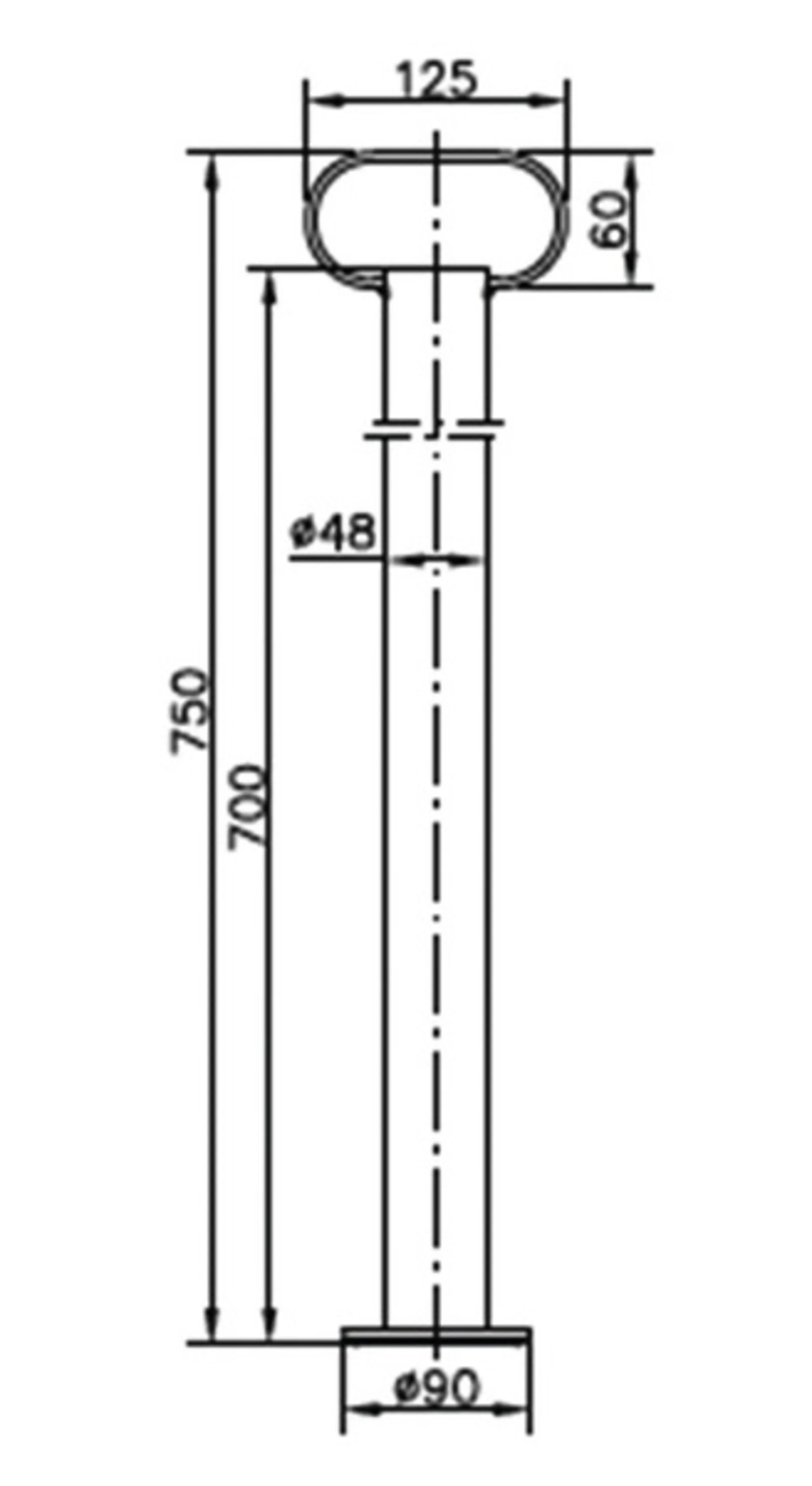Verzinktes Stützrohr, Gesamtlänge: 700mm, Durchmesser Rohr: 48mm, Durchmesser des Fußes: ca. 90mm