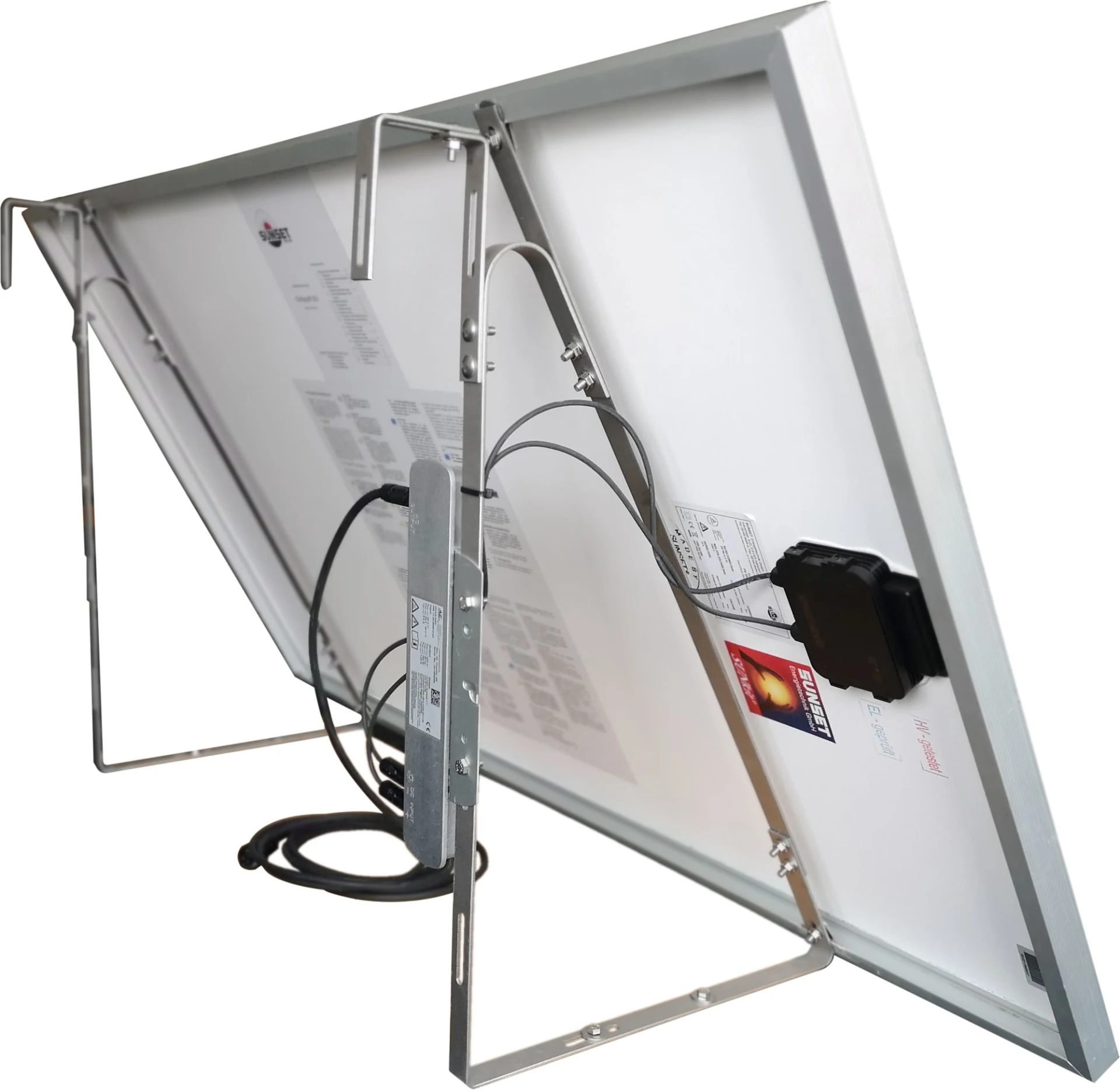 · inkl. monokristallinem 300W-Solarmodul, 300W-Mikro-WR, Edelstahl-Halterungs-Set, 5m-