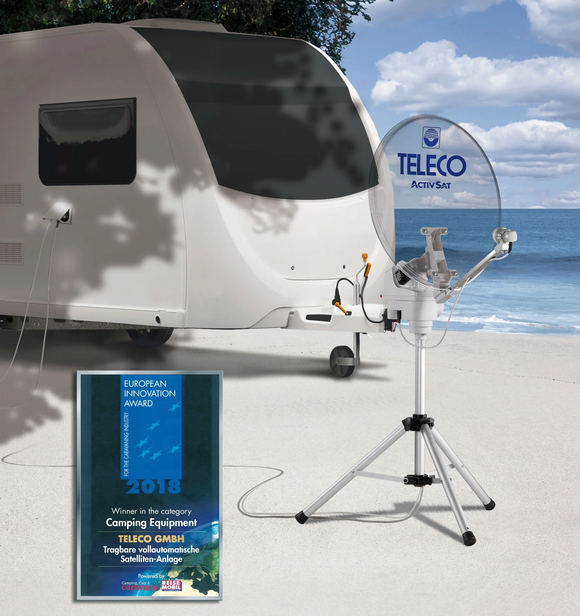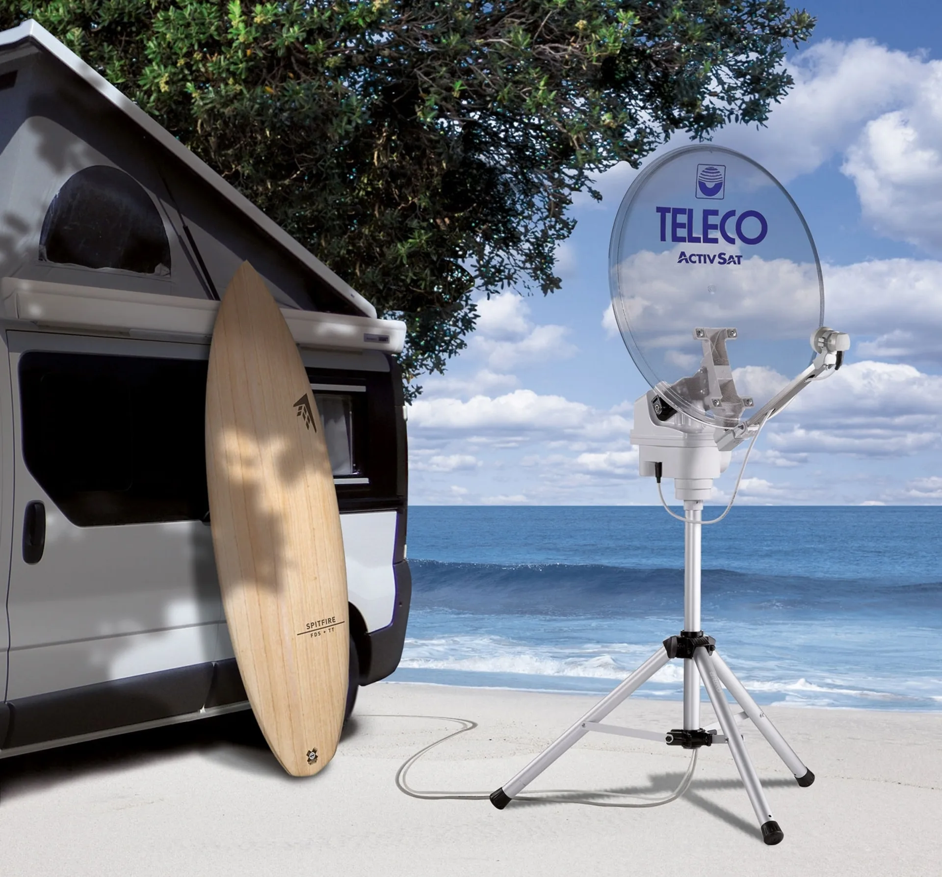 Sie können Ihren Caravan oder Camper Van im Schatten eines Baums parken und Ihre automatische Sat-Anlage ACTIVSAT an jedem beliebigen Ort installieren.
