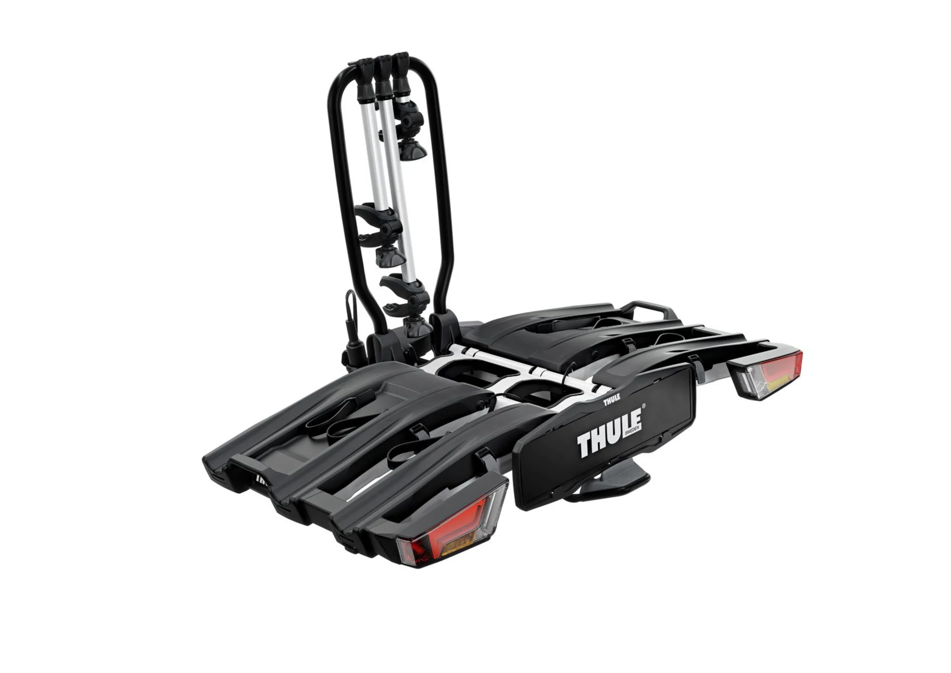 Der Thule EasyFold XT 3 Anhängerkupplungs-Fahrradträger ist ein komplett zusammenklappbarer, kompakter und benutzerfreundlicher Fahrradträger zur Montage an der Anhängerkupplung für eine Vielzahl von Fahrrädern und E-Bikes. Auch schwere Fahrräder lassen sich mühelos aufladen und mit der optionalen Laderampe ist es sogar noch einfacher. Mit diesem robusten Fahrradträger haben Sie auch bei aufgeladenen Fahrrädern vollen Zugang zum Kofferraum. Klappen Sie den Fahrradträger auf ein kompaktes Maß zusammen und verstauen Sie ihn im Kofferraum – perfekt für ein spontanes Fahrradabenteuer.