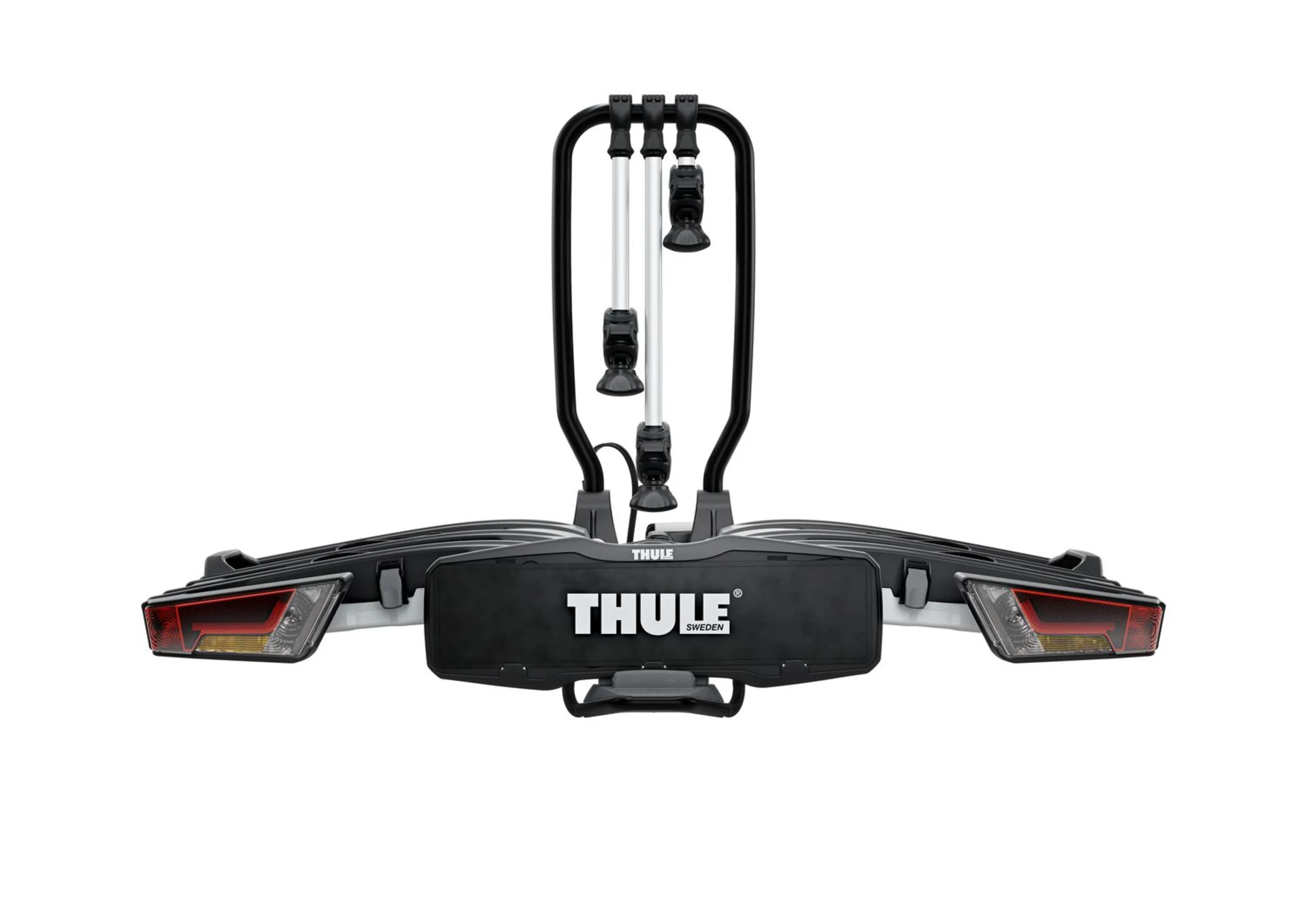 - Einfache Befestigung der Fahrräder durch abnehmbare Fahrradhaltearme mit abschließbaren Thule AcuTight Drehmomentbegrenzer-Knöpfen, die klicken, wenn das optimale Drehmoment erreicht ist.