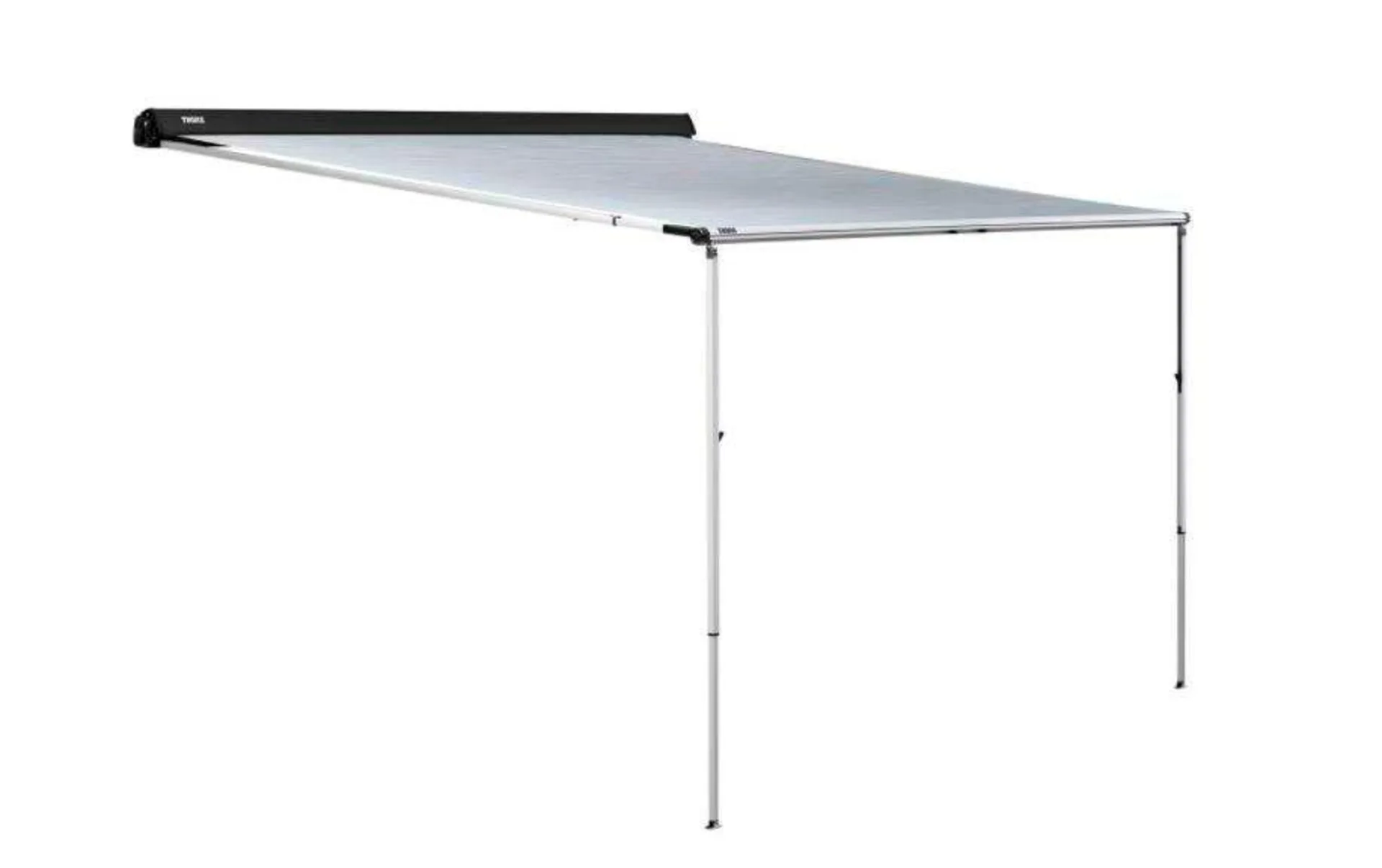 - 1 x Thule 3200 Rollmarkise mit integrierten Spannstangen und Stützfüßen (vormontiert in der Kassette)