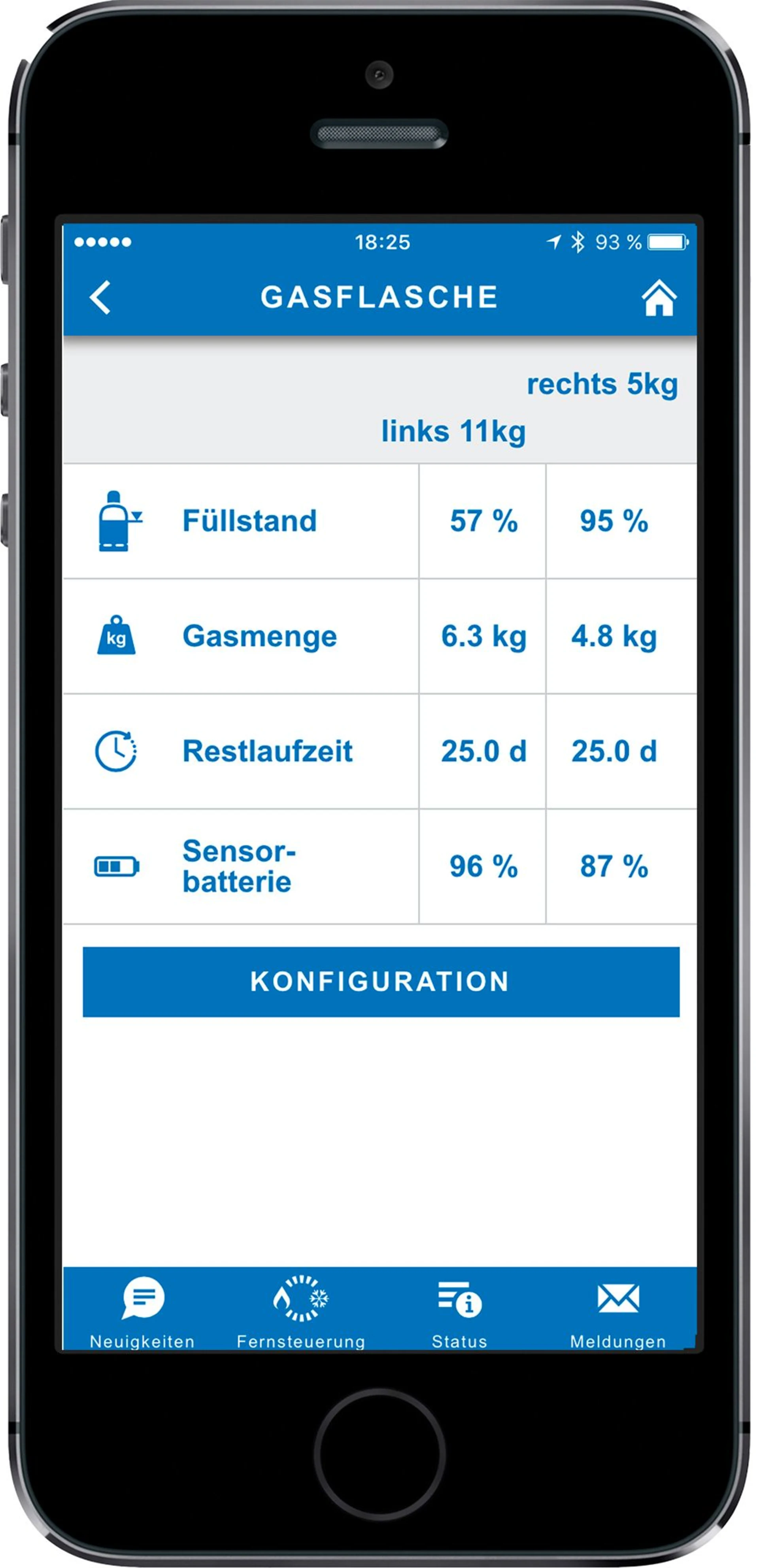 - Schnelle und präzise Messung des Gasvorrats in Kilogramm und Prozent
