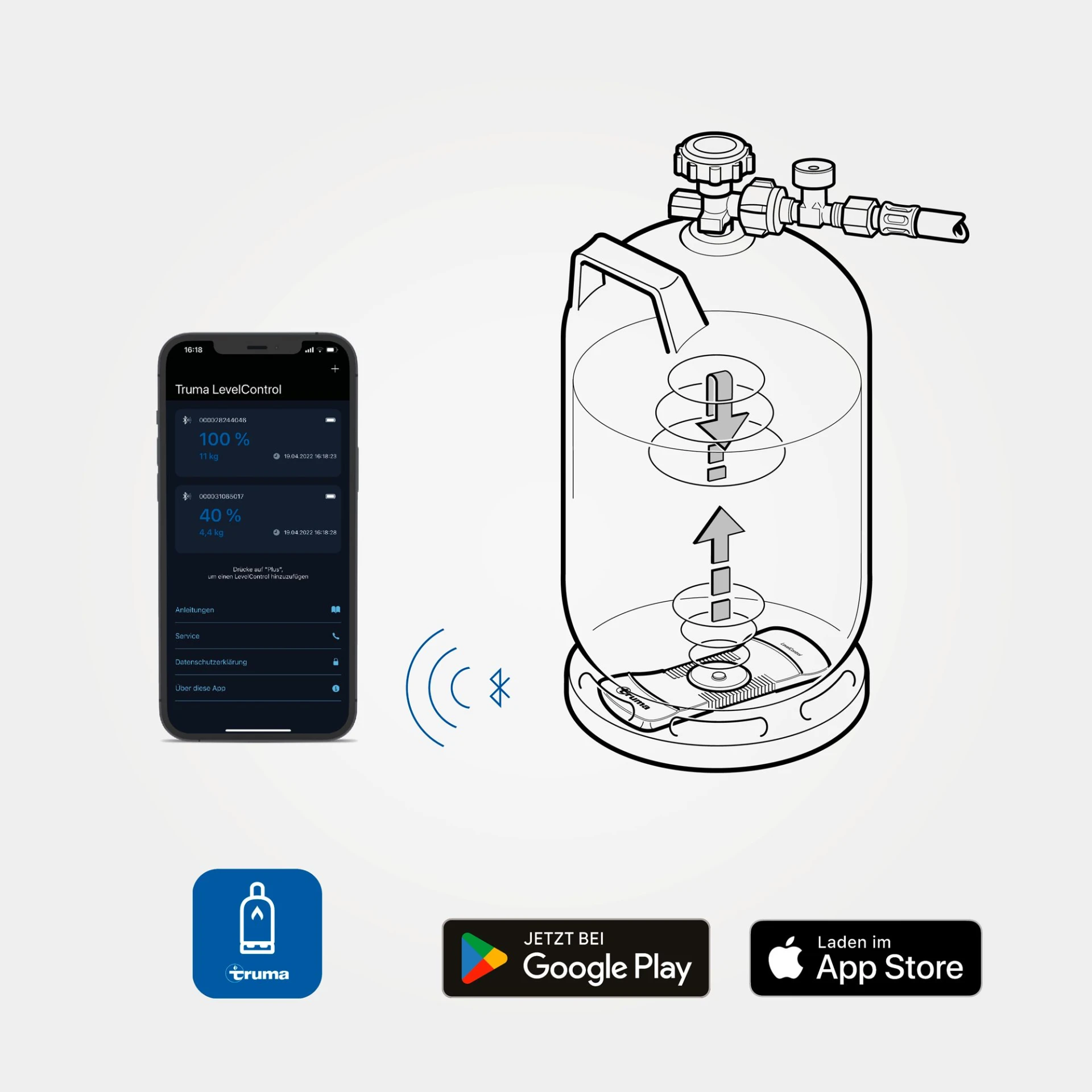 - Aktuellen Füllstand über die Truma LevelControl App einsehen