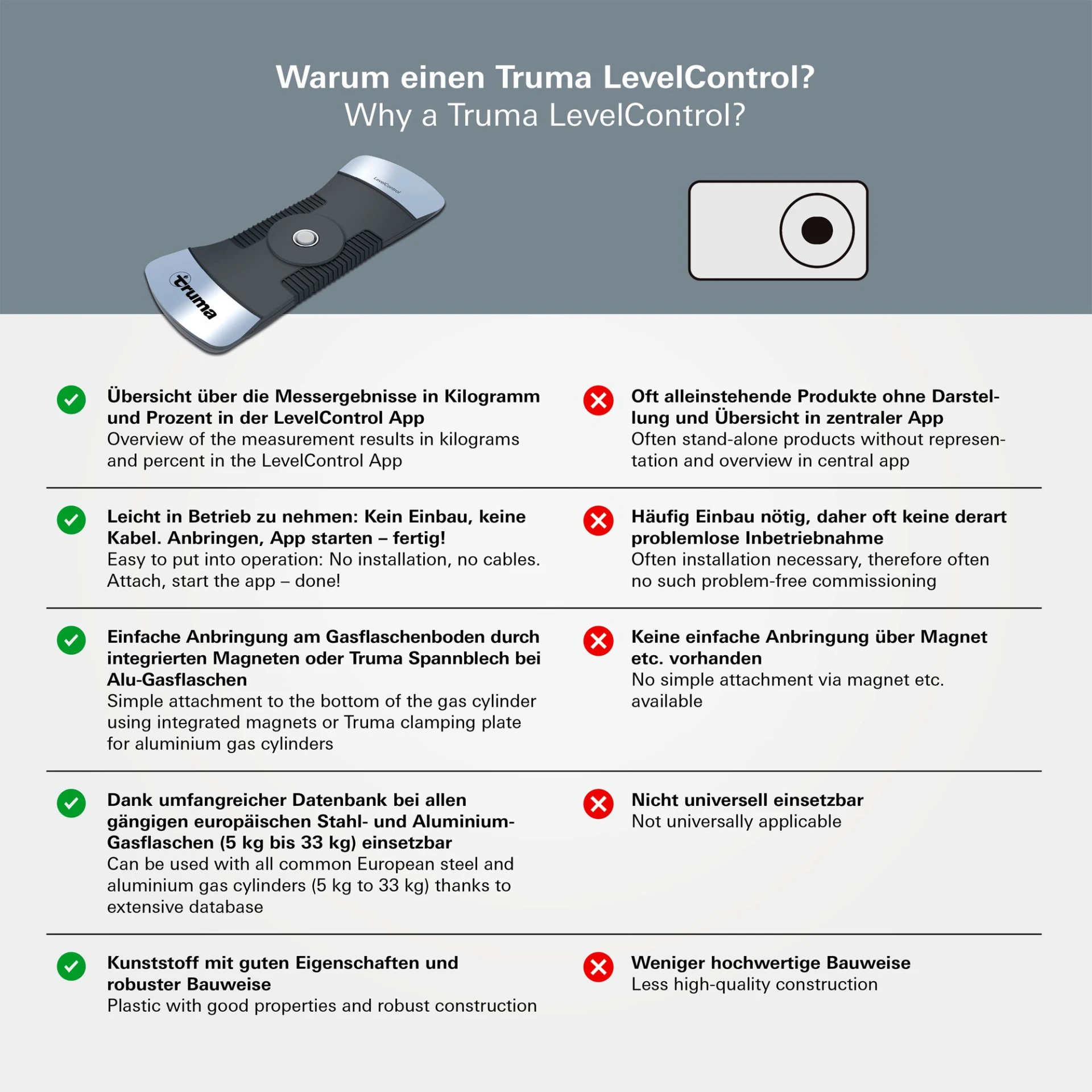 - Bis zu vier Truma LevelControl Geräte gleichzeitig verwendbar (über Truma LevelControl App)