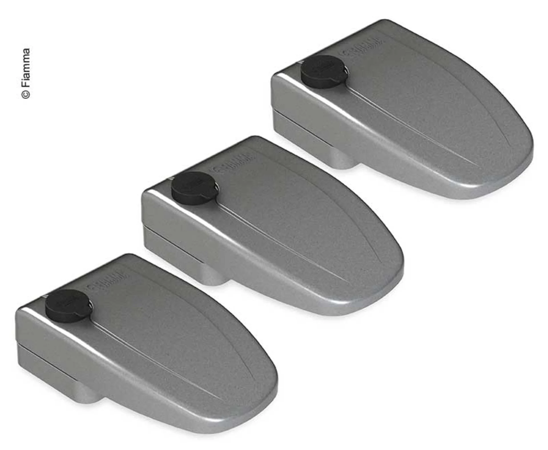 Sicherung får Reisemobiltåren. Ebenfalls geeignet får Deichselkästen, Garagentåren. (Safe Door Außentårsicherung)Die bewährten Safe Door Schlösser wurden weiter verbessert. Ein neues Schloss, neues Schlossabdeckungsdesign mit asymmetrischen Befestigungspunkt får einfacheren Wechsel von Sicherheitsschlåssel im Handel nach einem Verlust.