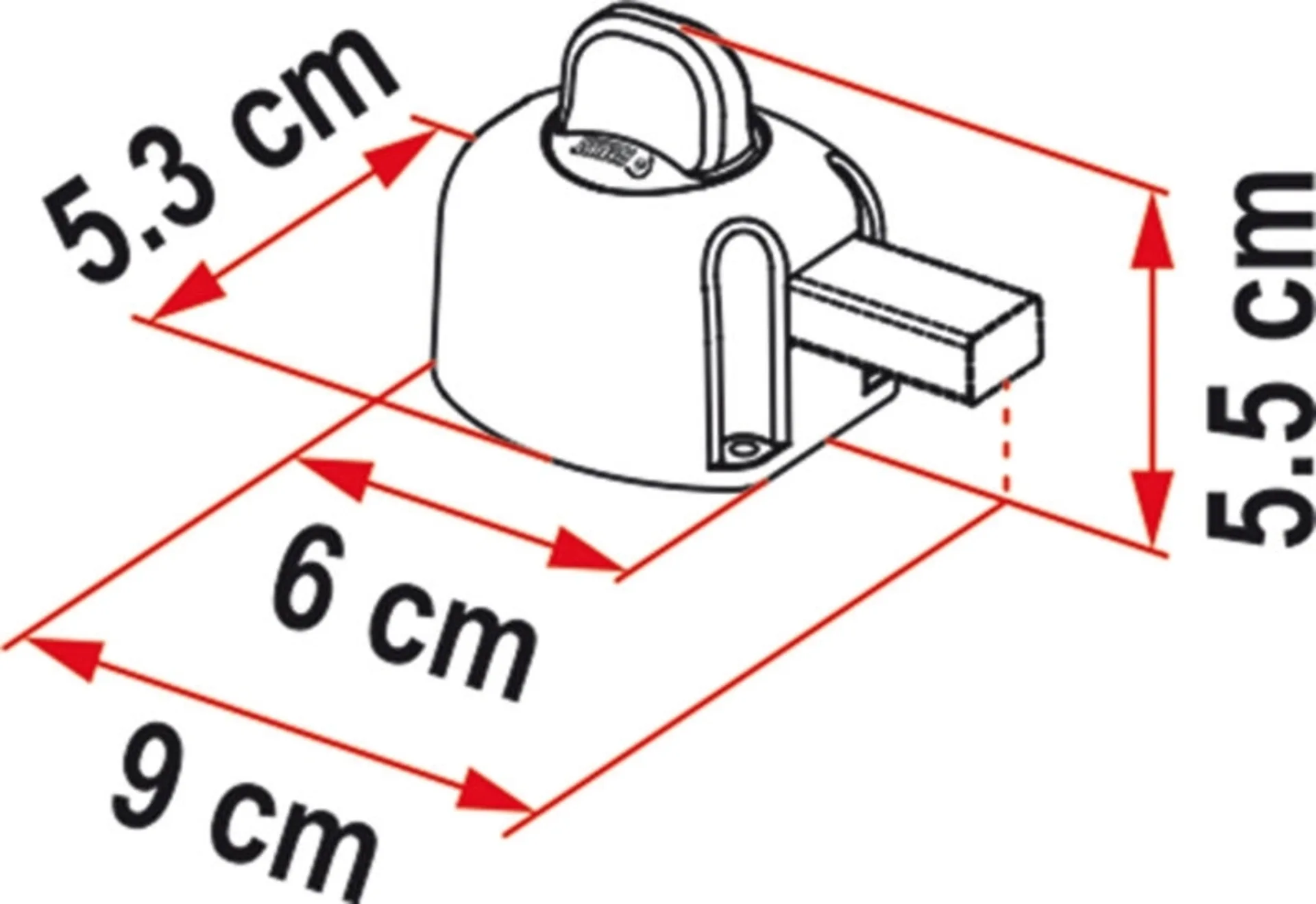 - Sicherheitsblock zum Anbringen im Inneren der Tür oder Garage des Wohnwagens/Wohnmobils bzw. zum Blockieren der Vordertür.