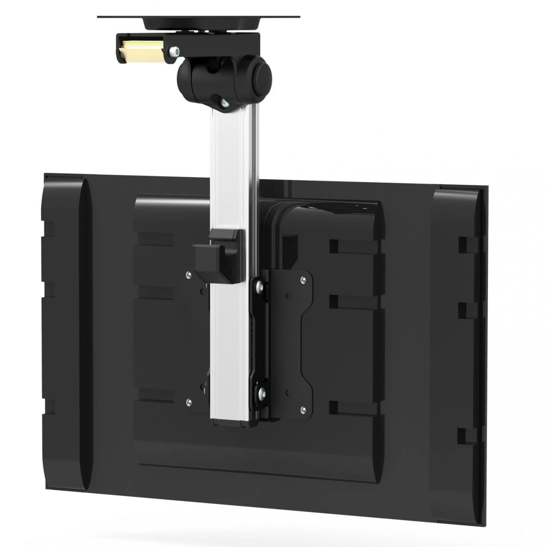 Diese Deckenhalterung kann platzsparend nach oben geklappt werden.