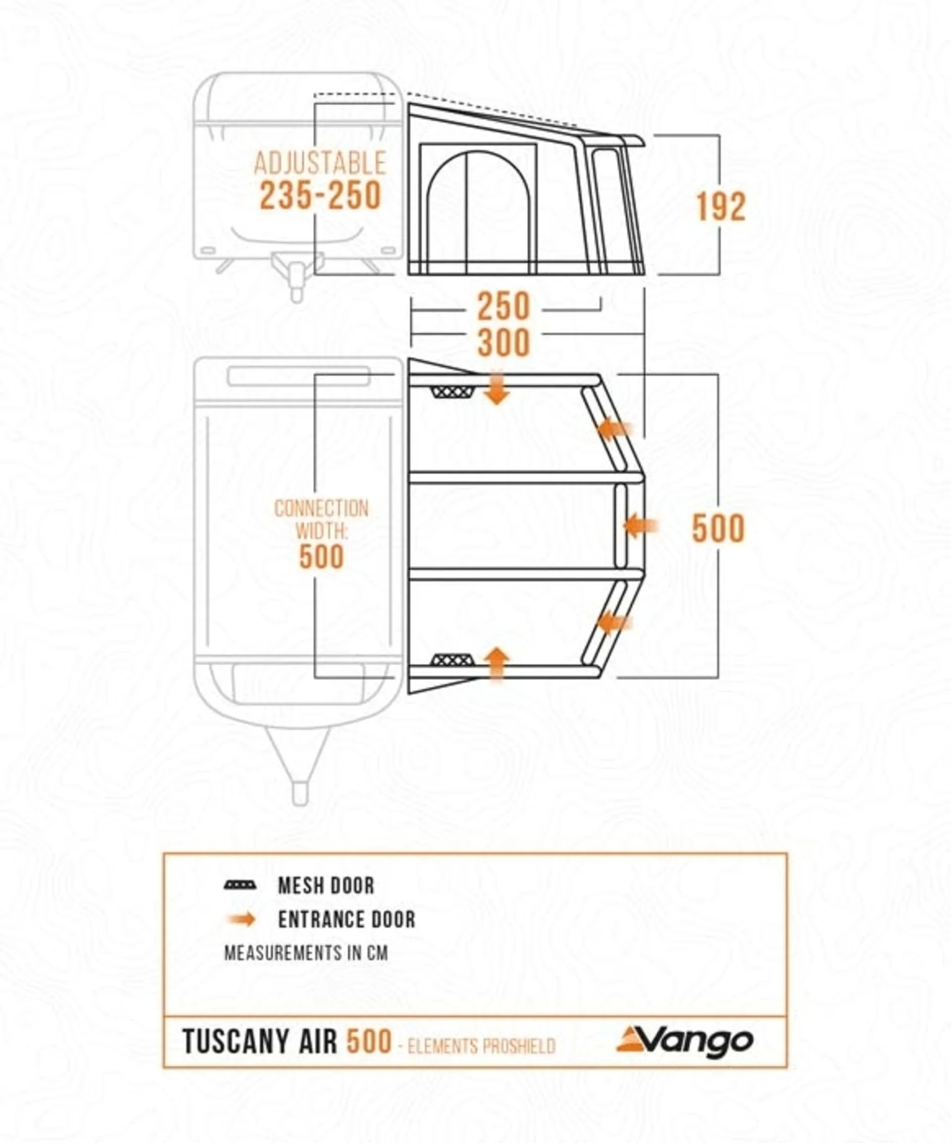 Das aufblasbare Wohnwagenvorzelt Tuscany bietet Rundumblicke mit großen Diamond-Pro-Fenstern und Sichtschutzvorhänge mit mehreren Reißverschlüssen. Das Tuscany bietet mehrere Optionen für eine bessere Belüftung dank integrierter Netztüren mit Reißverschluss, die ein kühles Vorzelt schaffen und gleichzeitig Insekten fernhalten. Ausgestattet mit unserem neuen Sentinel-Elegance-Stoff mit Vango-ColourLok-Technologie, welche die Auswirkungen von UV-Strahlen reduziert, kannst du dich zurücklehnen und auf jedem Campingplatz mit Stil entspannen.