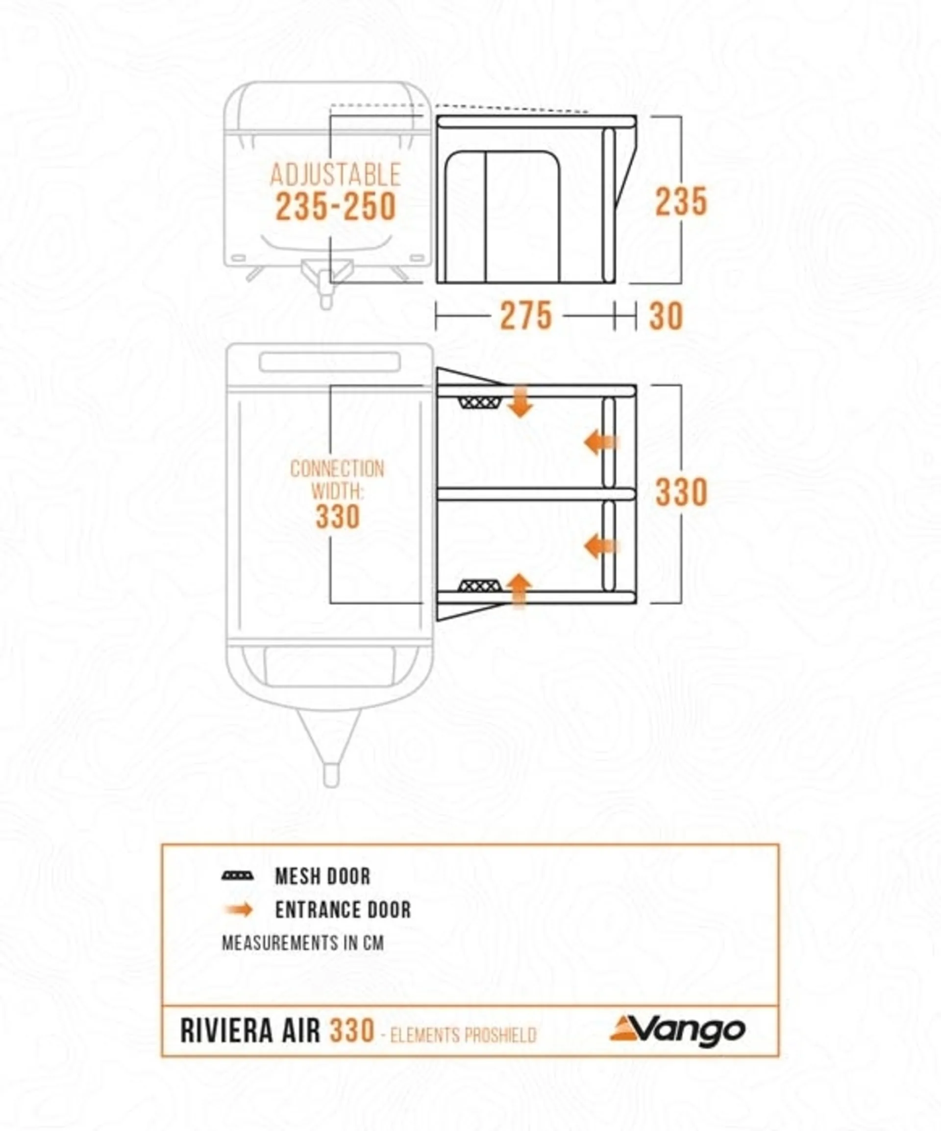 Ein klassisches Design voller praktischer Funktionen für ein Zuhause-Gefühl, wohin du auch gehst. Mit Vangos revolutionärer AirBeam® S.I Pro Single Point Inflation und Multi-Point Deflation, die jedes Mal eine nahtlose Tonhöhe und Verpackung gewährleistet. Hergestellt aus strapazierfähigem Elements ProShield-Gewebe, das sicherstellt, dass deine Markise selbst rauen Wetterbedingungen standhält und überlegene Oberflächen wie Diamond Pro Windows für kristallklare Ansichten und verbesserte Isolierung bietet. Mit einem optionalen Anbau, um deinen Platz für die Lagerung oder zusätzliche Gäste zu erweitern, gibt es ausreichend Platz für die ganze Familie. Mach das Beste aus der Zeit zusammen mit der Vango Riviera.