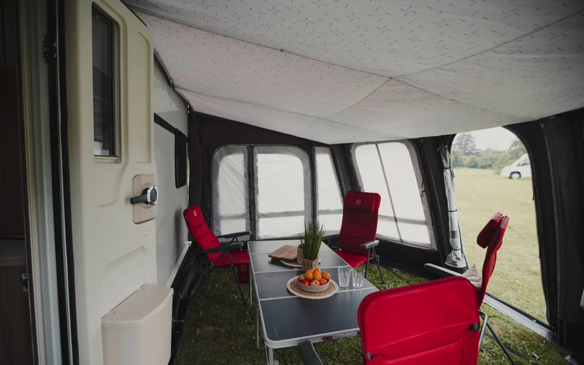 - Zugabdichtungssystem - für festen Sitz zwischen Markise und Wohnwagen ohne Zugluft