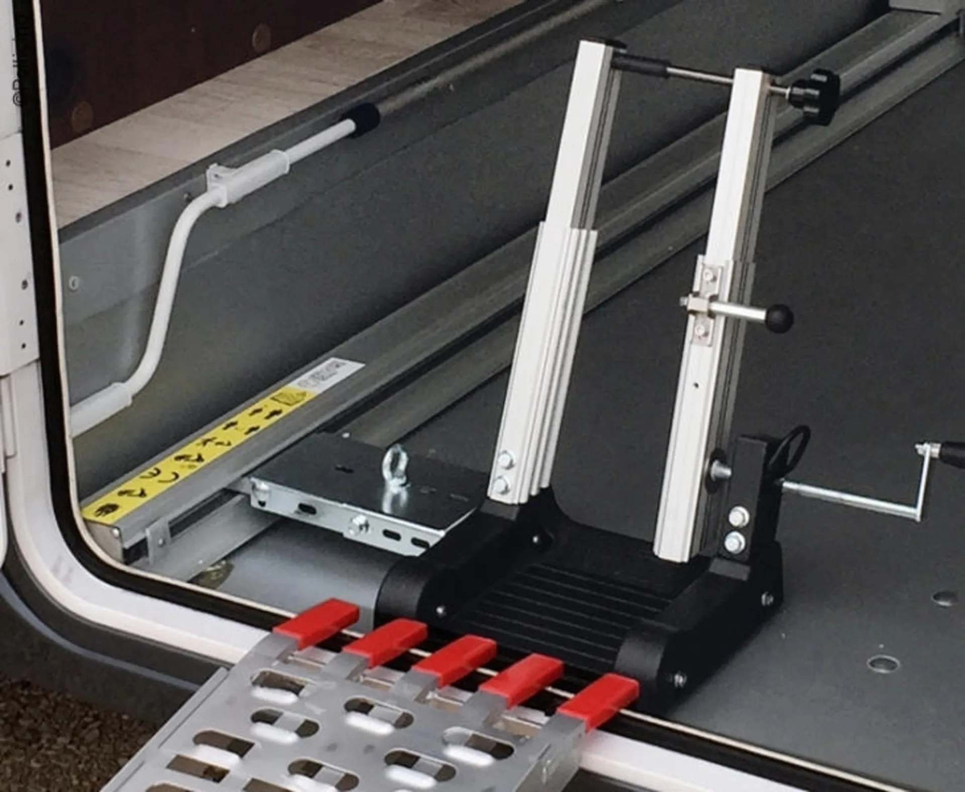 - Elektrisches oder manuelles Ein- und Ausladen von Motorrädern oder Rollern in der Heckgarage