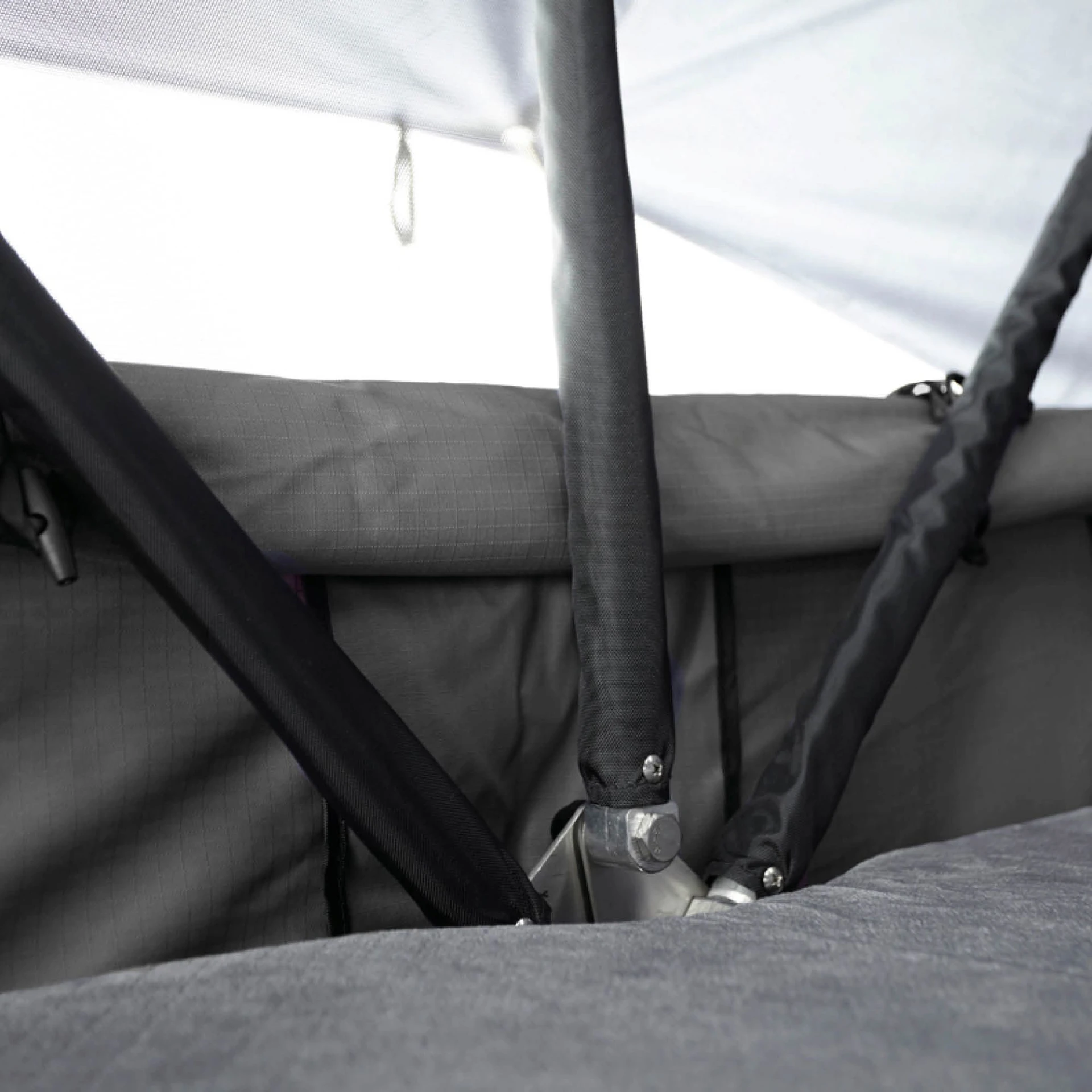 Das Big Willow Dachzelt ist der perfekte Allrounder für dein nächstes Abenteuer. Mit einer Liegefläche von 240 x 160 cm bietet es ausreichend Platz für bis zu 3 Personen und sorgt mit seinem großzügigen Raumgefühl für maximalen Komfort. Der überdachte Vorbau schützt dich beim Einstieg vor Wind und Regen und ermöglicht einen trockenen Zugang zum Zelt. Der Aufbau gelingt schnell und einfach, auch allein, dank des klappbaren Vordachs. Mit praktischen Features wie dimmbarer LED-Innenbeleuchtung, Schuhtaschen und Moskitonetzen ist das Big Willow bestens für Outdoor-Erlebnisse ausgestattet.