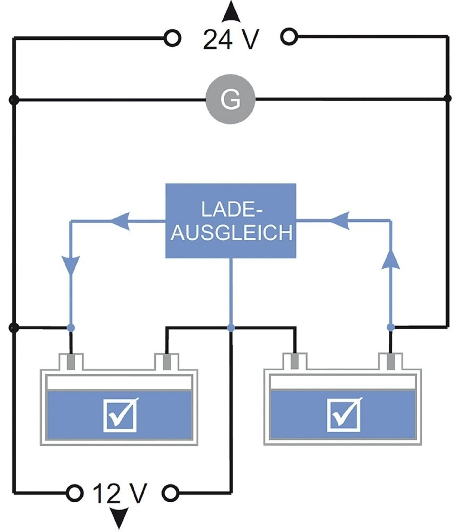 Dient dazu, den unterschiedlichen Ladestand zwischen zwei in Serie geschalteten 12 V-Batterien in einem 24 V-System auszugleichen.