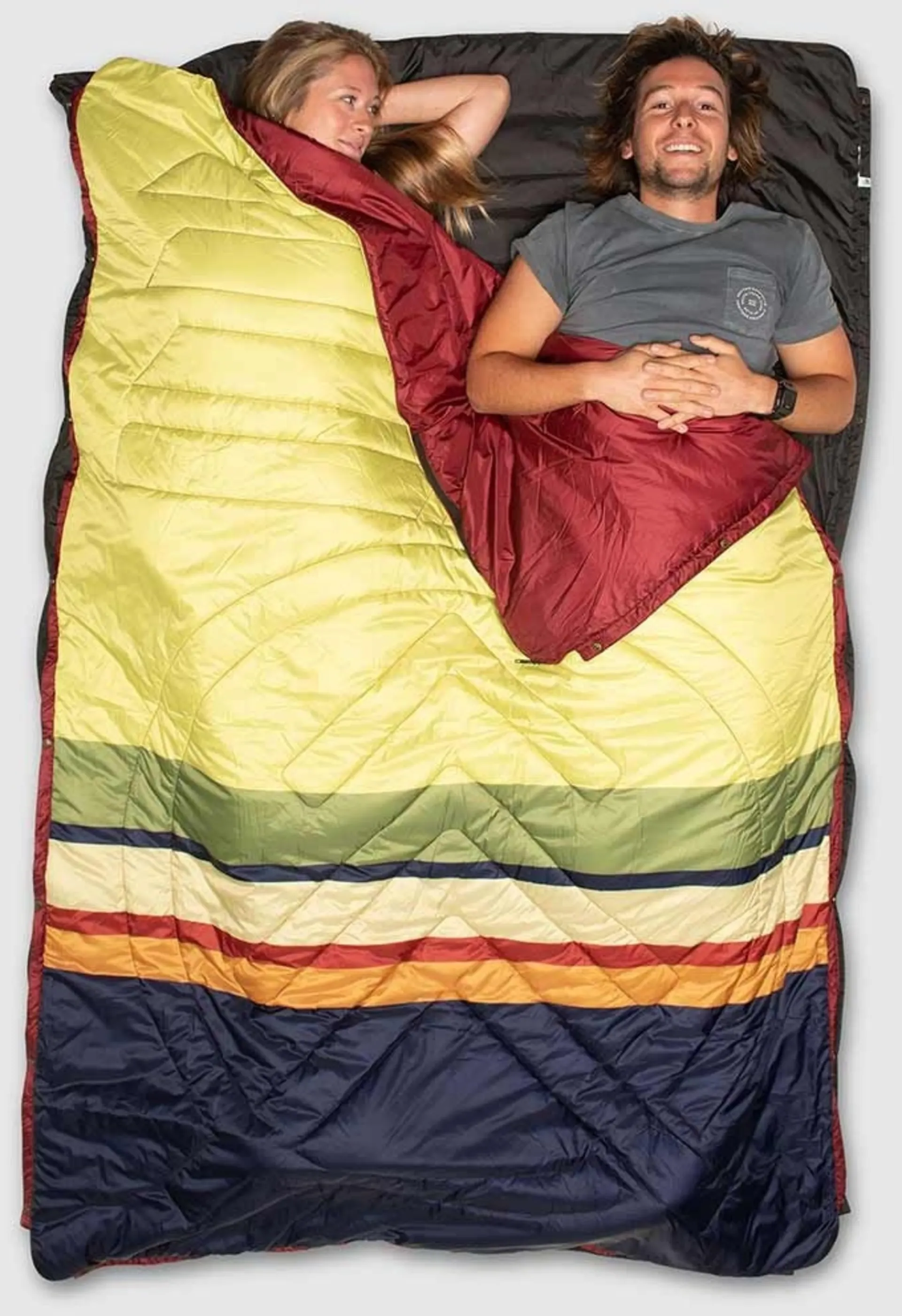 Die isolierte, maschinenwaschbare und aus 100 % recycelten Plastikflaschen hergestellte Classic 4-in-1 PillowBlanket ist die ultimative Mischung aus Technik und Komfort. Die 4-in-1 ist viel mehr als nur eine Decke. Sie lässt sich in ein Kopfkissen oder Schlafsack verwandeln und mit einem Druckknopf zu einem wasserdichten Umhang umfunktionieren.