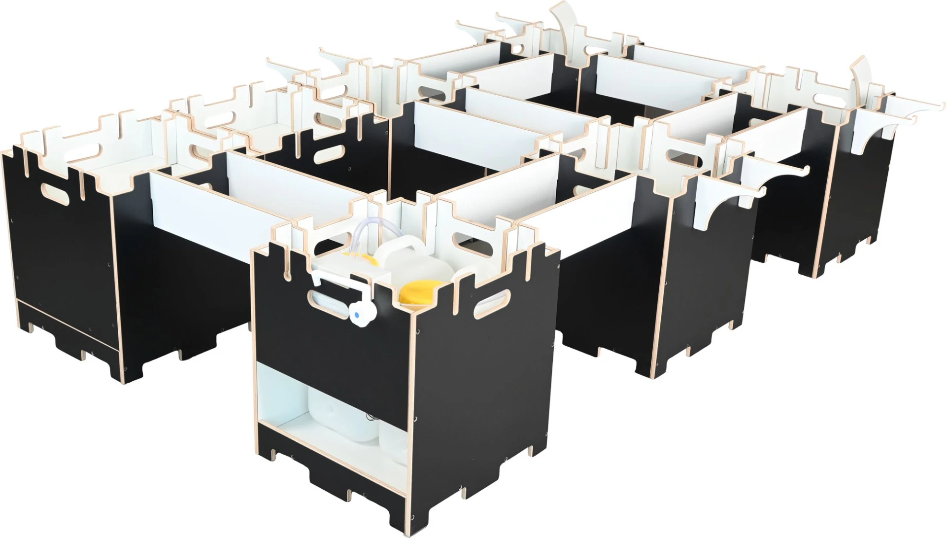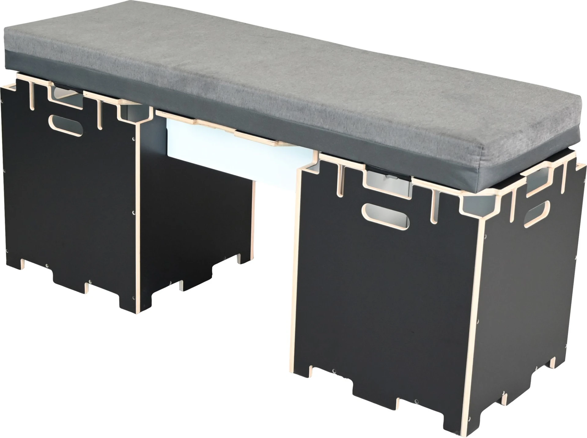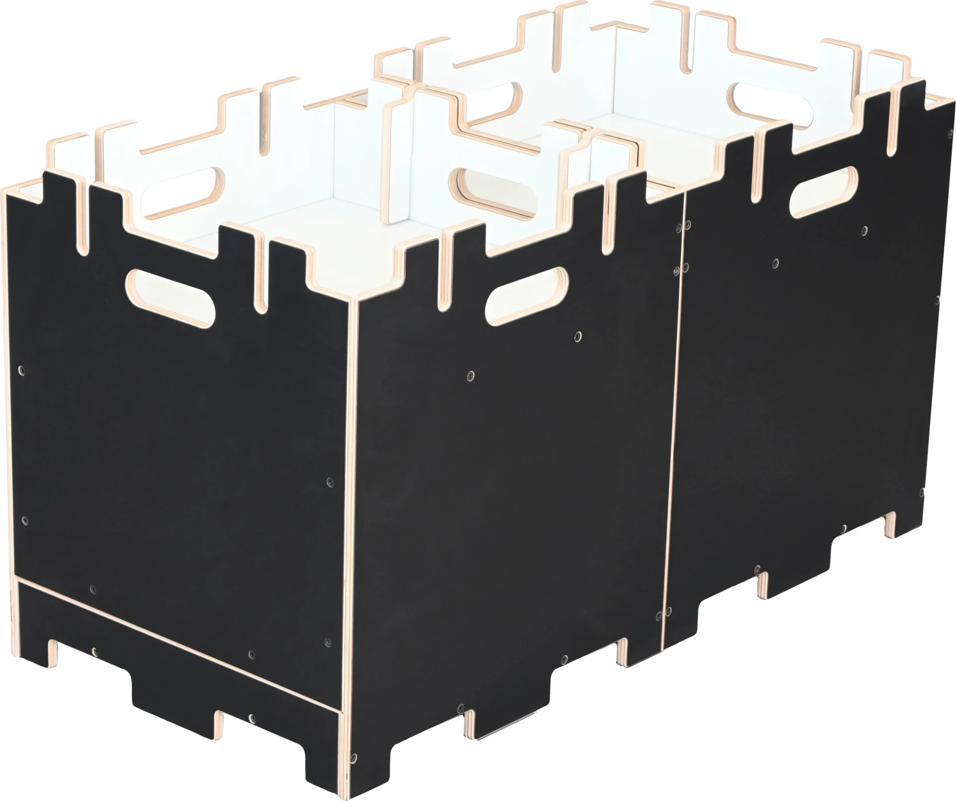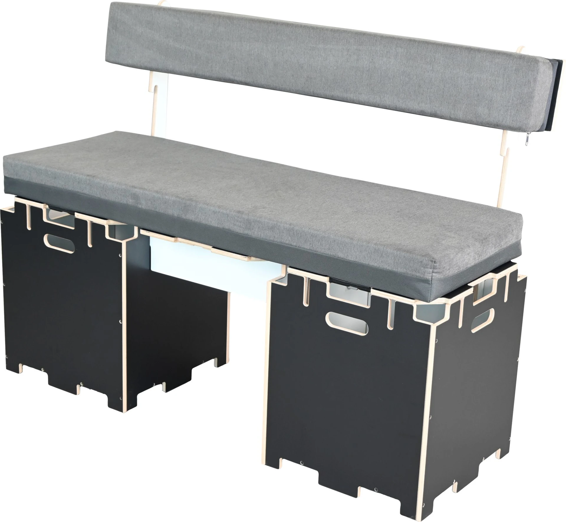 VOJO ist ein Built-in-System, das aus einem Set modularer Boxen besteht, die ganz einfach wie Bausteine im Stecksystem-Prinzip mit Holzverbindungsstücken ohne Werkzeug miteinander verbunden und kombiniert werden können. Dadurch ist sie vielseitig einsetzbar: ob als Campingbox im Auto für dein nächstes Abenteuer, als Sitz- oder Wohnbereich im oder vor dem Fahrzeug, Gästebett für Besucher, Kinderzimmermöbel zur Aufbewahrung, als Gartenmöbel, zum Aufbau eines Tresens oder sogar als Homeoffice-Arbeitsplatz und Aufbewahrungsmöbel für Ausrüstung oder Werkzeugen in der Garage.