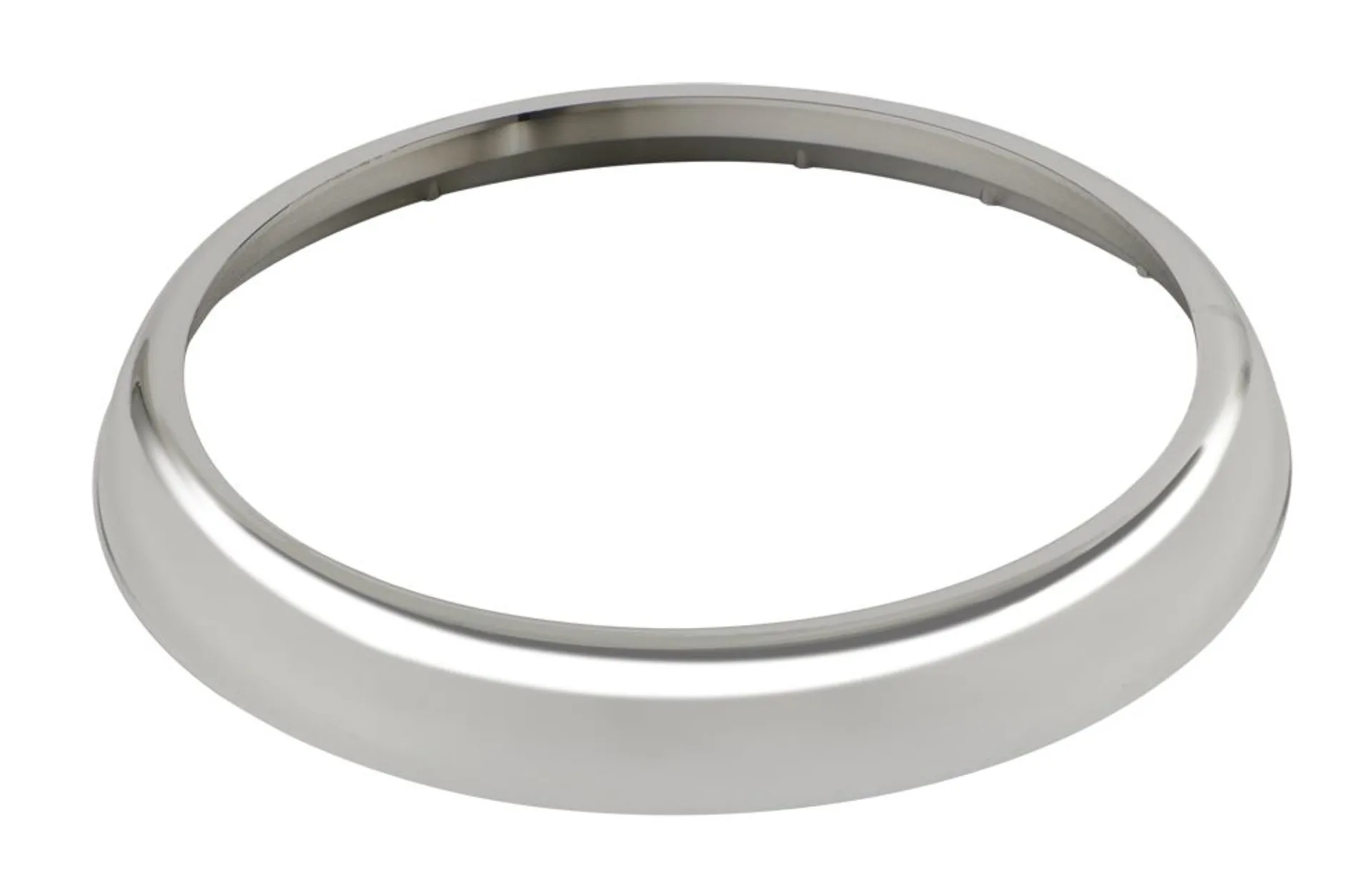 - ACHTUNG: der Chromring wird zwischen der Leuchte und das Gehäuse geklemmt. Dazu muss bei der Leuchte zuerst das Gehäuse abmontiert werden.