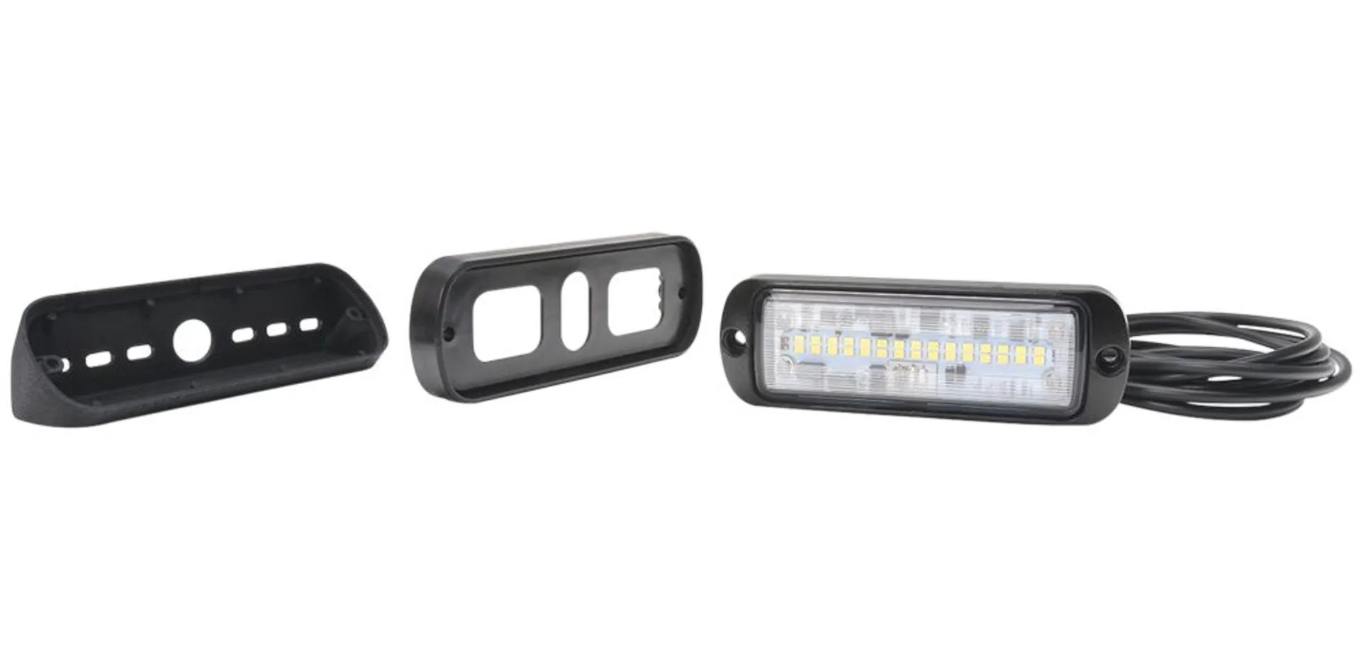 - mit 2 Halterungen zur Aufbaumontage flach oder um 45° abstehend