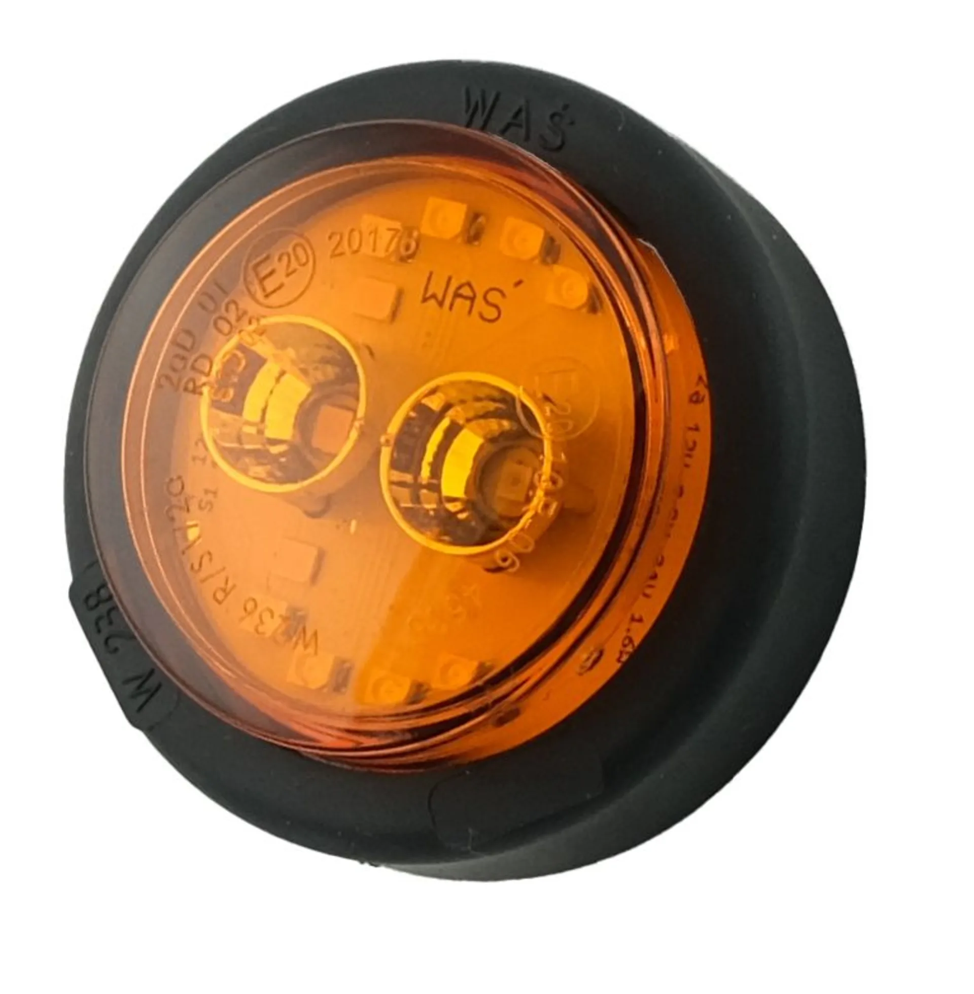 - Glas ist in ausgeschaltetem Zustand orange. Bei eingeschaltetem Positions- oder Bremslicht leuchtet es rot