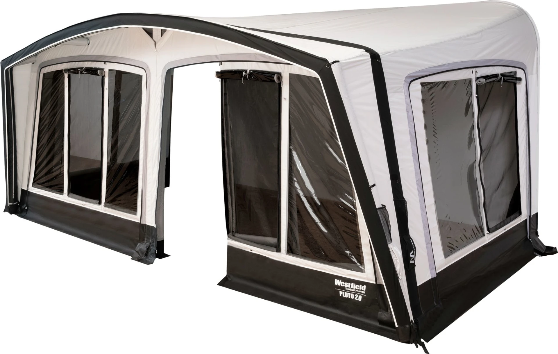 Durch die großen Panoramafenster hast du immer einen perfekten Ausblick und optimale Lichtverhältnisse in deinem Luftvorzelt. Dank der AAS-Lufttechnik lässt sich das Pluto XL superschnell und einfach aufbauen.