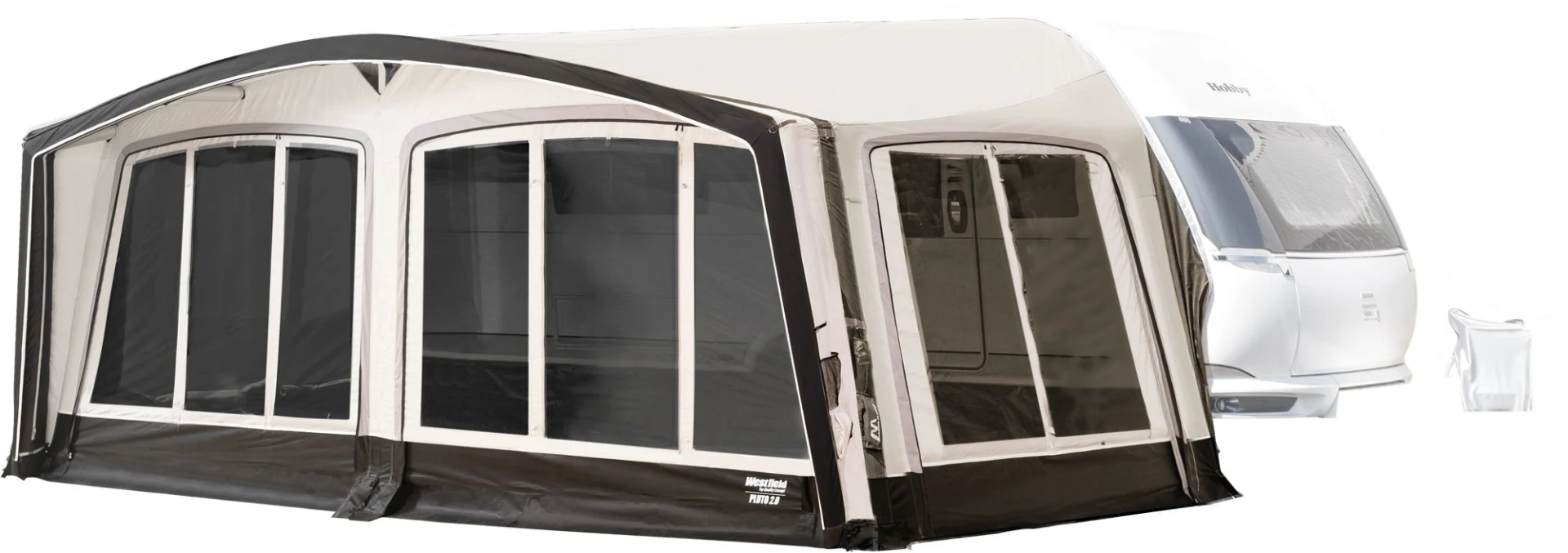 Das Luftvorzelt Pluto XL in neuem Design 2024 bietet mit einer Vorzelttiefe von 300 cm ein überragendes Raumgefühl. Durch den Volleinzug in der Kederschiene deines Caravans lassen sich alle Fenster, Türen und Serviceklappen problemlos öffnen und du erreichst eine perfekte Abdichtung an den Seiten deines Caravans auch bei schlechtem Wetter. Ein sehr gutes Raumklima selbst an heißen Sommertagen wird durch das hochwertige HydroTech CottonTouch Material, die Dauerventilation und die abgetönten Fenster erreicht.
