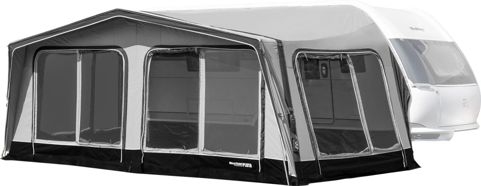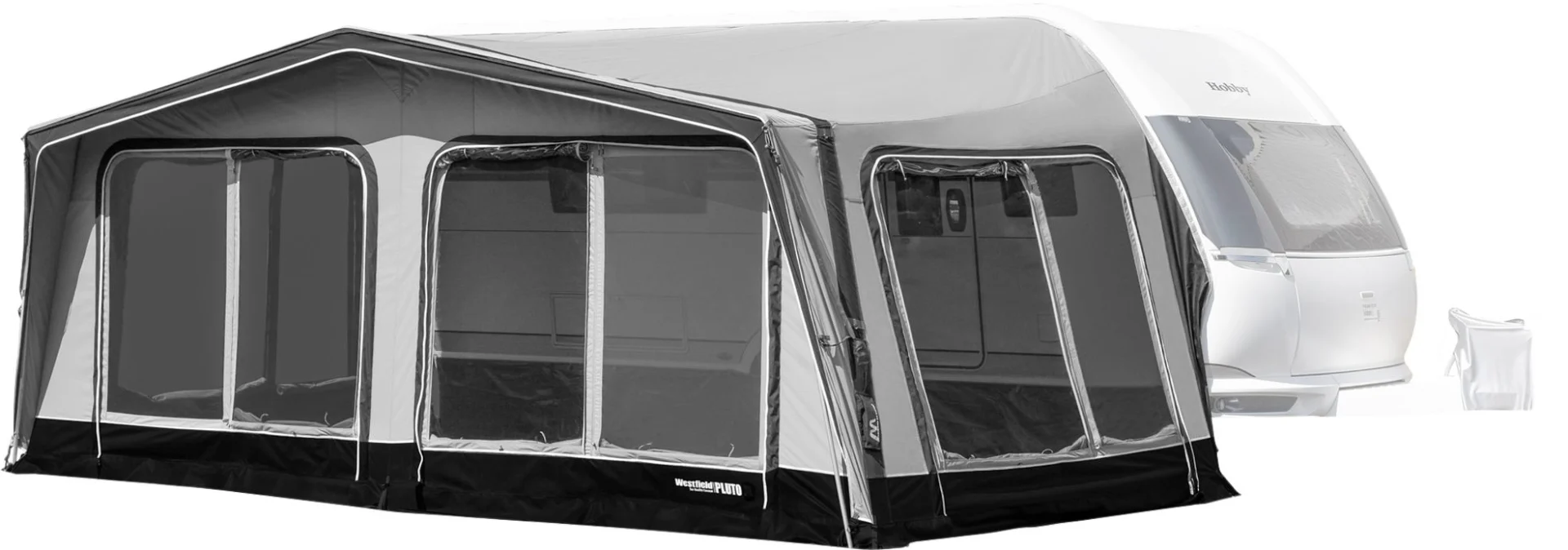 Durch den Volleinzug in der Kederschiene Ihres Caravans lassen sich alle Fenster, Türen, Serviceklappen und die Tür des PLUTO problemlos öffnen und Sie erreichen eine perfekte Abdichtung an den Seiten Ihres Caravans gegen Wind und Wetter. Die abnehmbaren Vorder- und Seitenwände sind mit Moskitonetzen ausgestattet und können nach Bedarf eingesetzt werden. Durch die großen Panoramafenster haben Sie immer einen perfekten Ausblick und optimale Lichtverhältnisse in Ihrem Luftvorzelt. Ein grenzenloses Panorama-Gefuhl erwartet Sie. Dank der AAS-Lufttechnik ist das Luftvorzelt PLUTO superschnell und einfach aufgebaut.