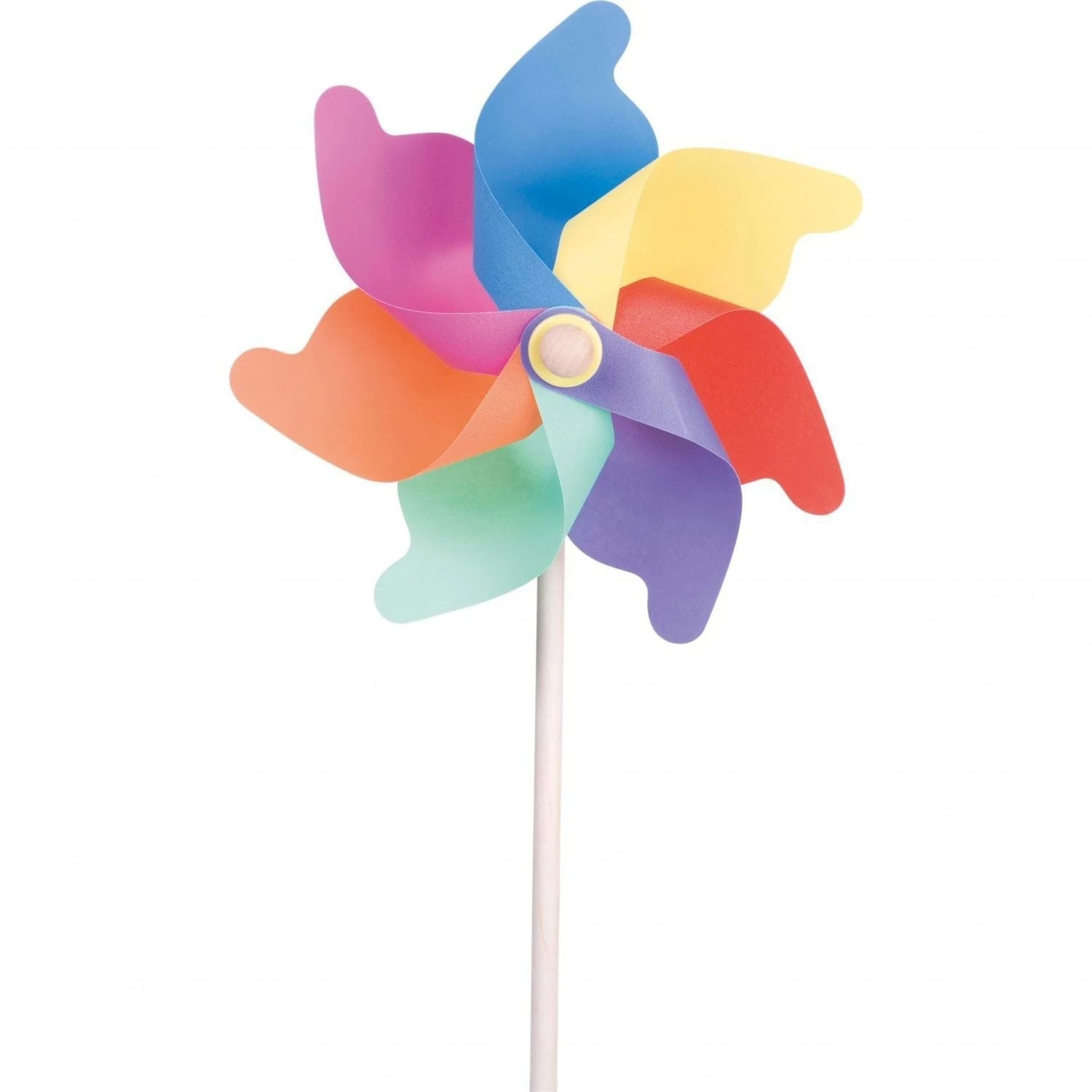 Die bunte Windmühle ist eine pfiffige Dekoration für Garten, Terrasse und Unterwegs. Einfach anbringen und sich vom Farbspiel begeistern lassen. Der Stab besteht aus Holz, Länge 60 cm.