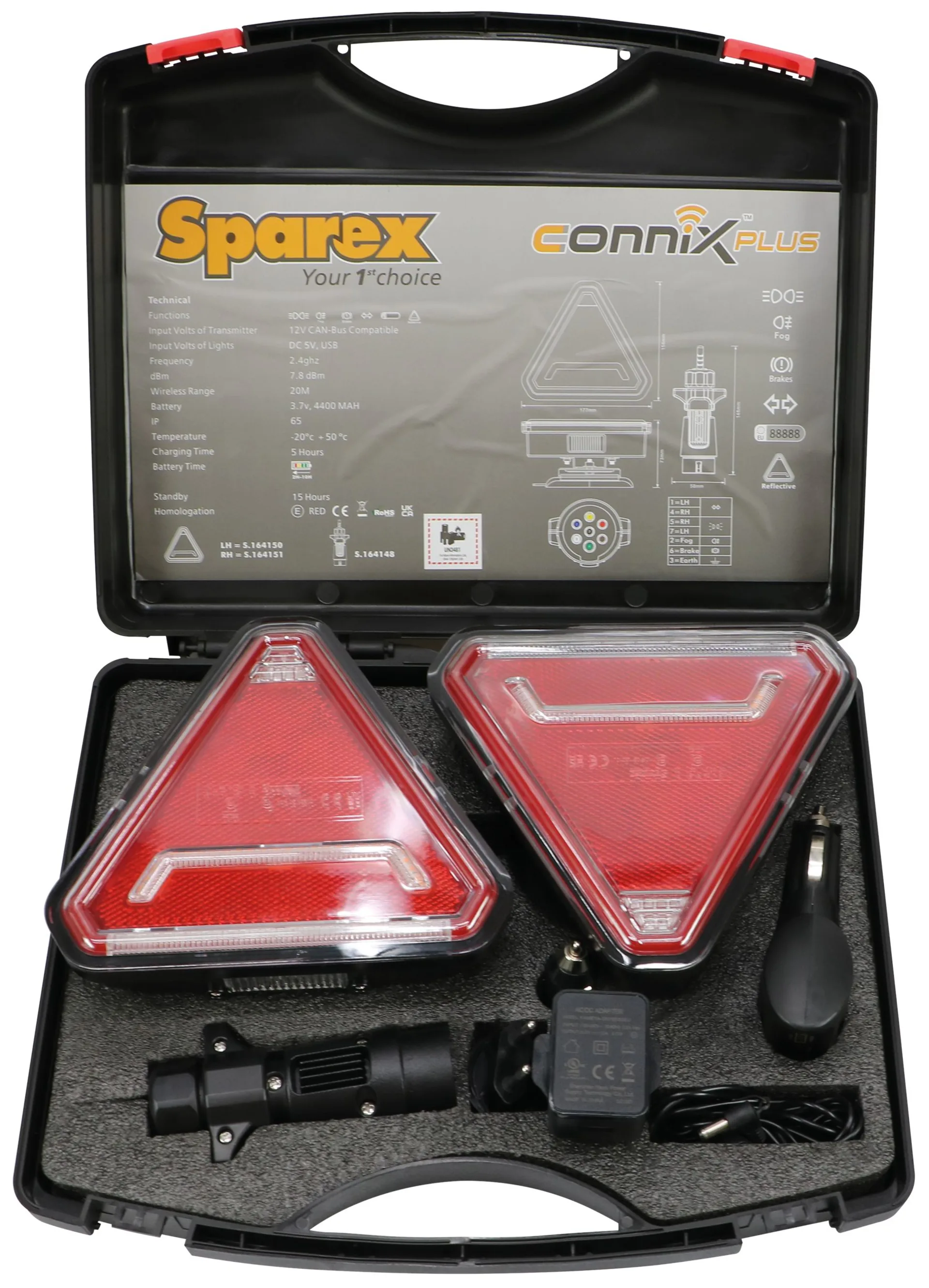 - Kabellose Funkverbindung zwischen 7-Pol-Stecker und Leuchten