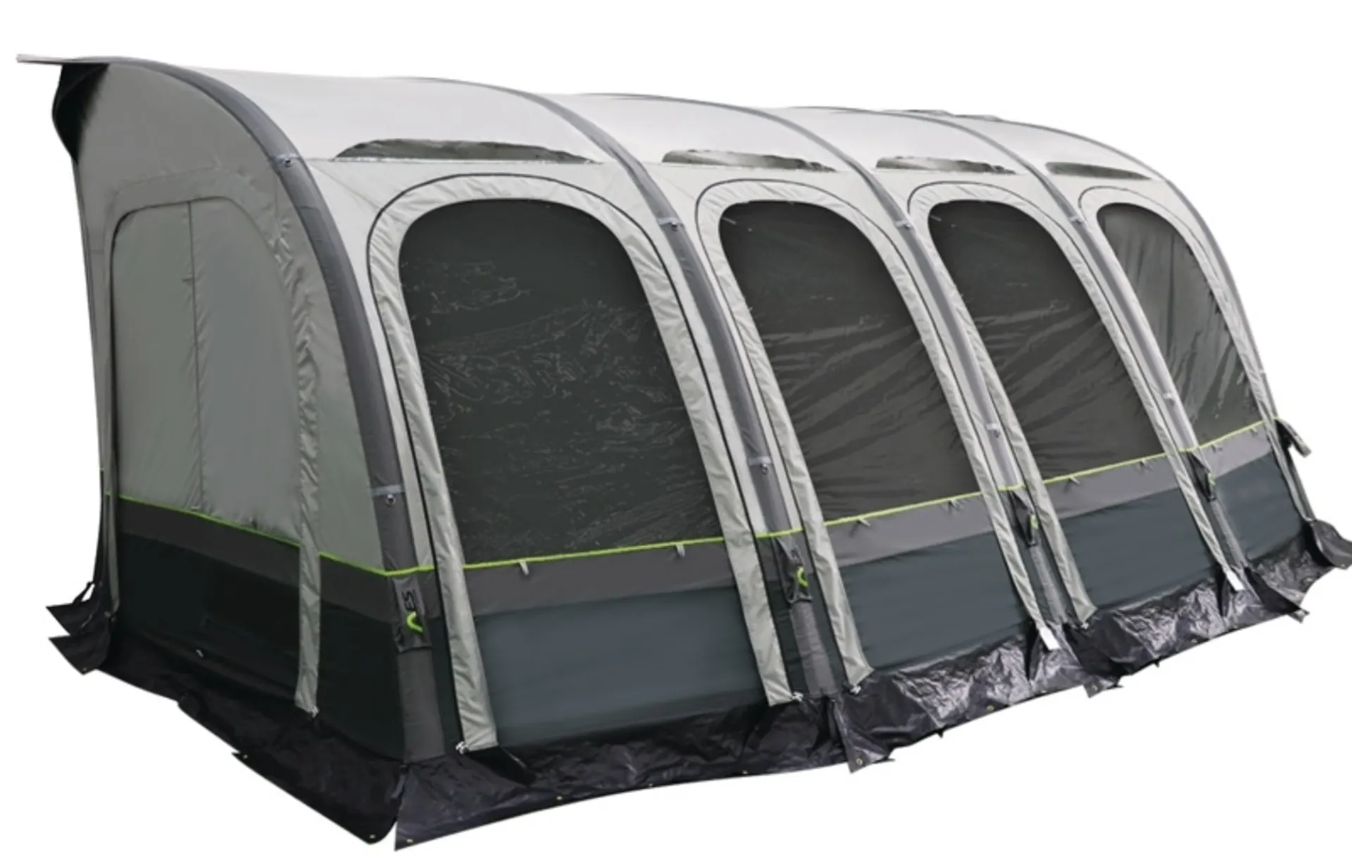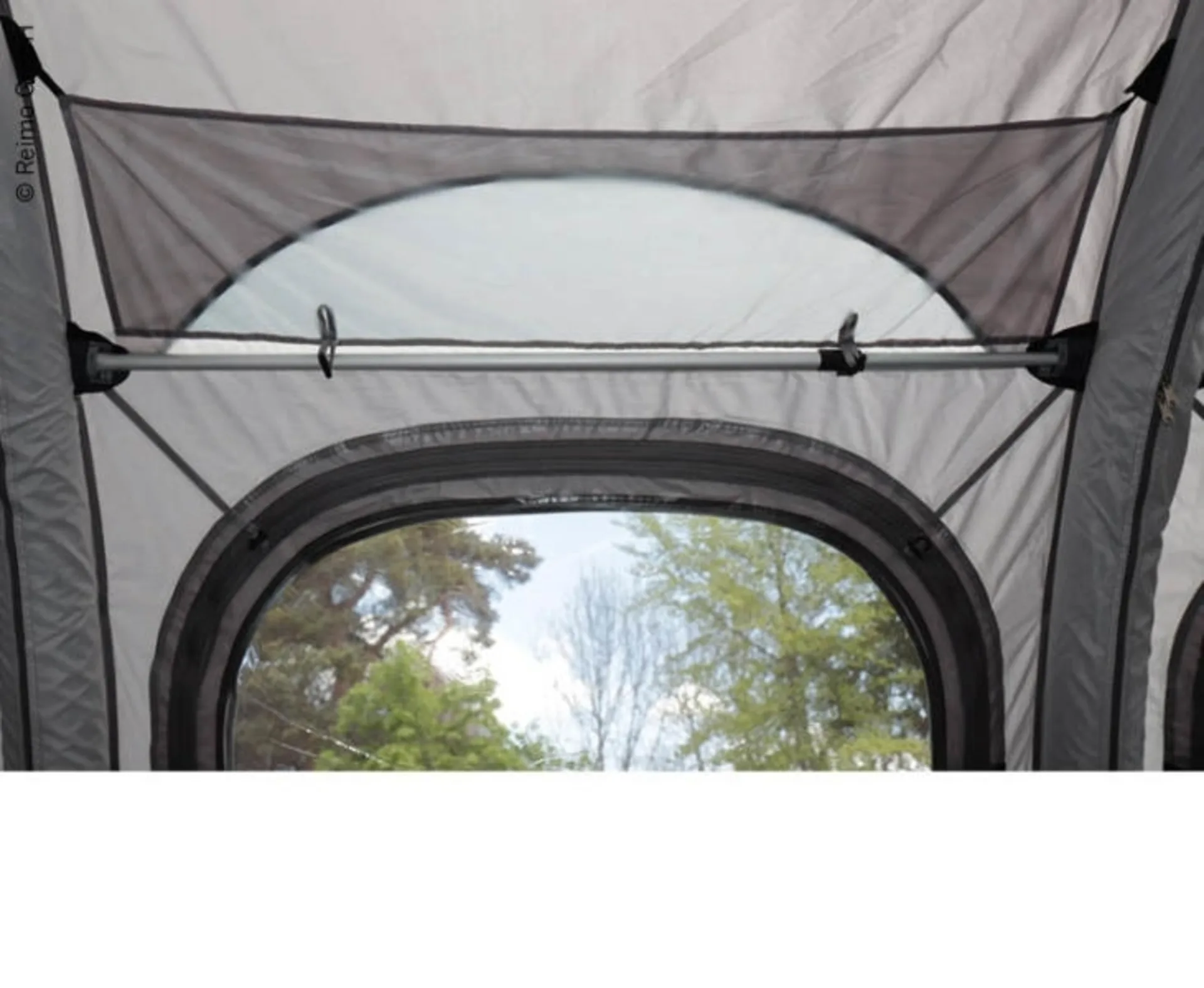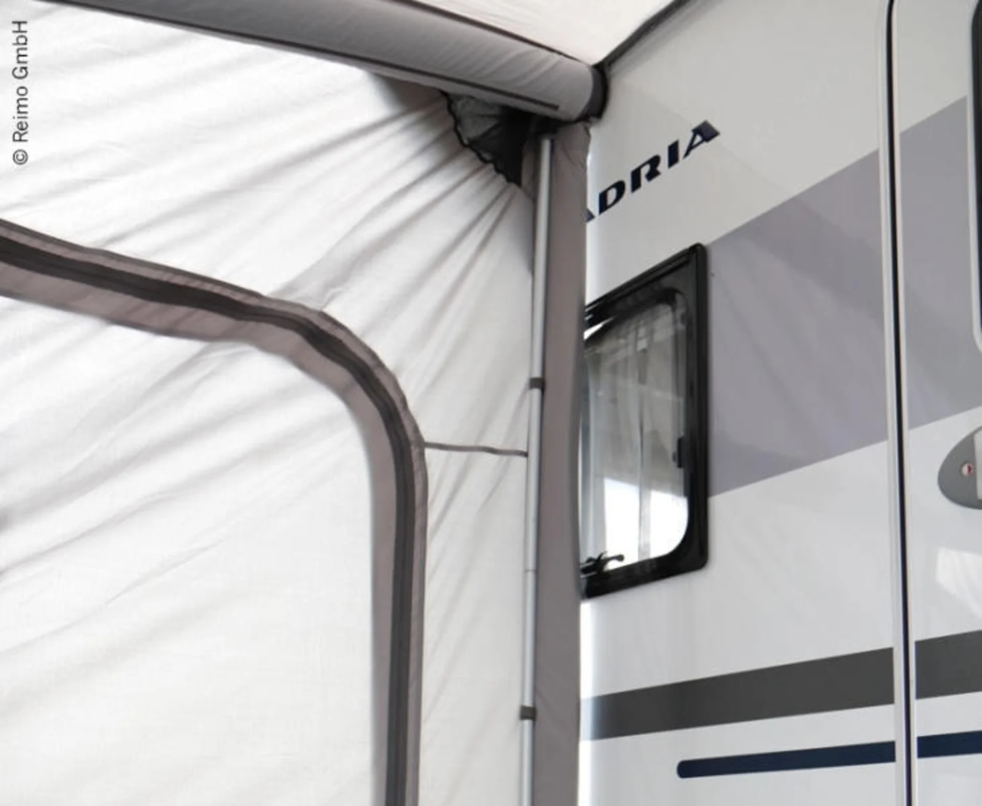 Das Wohnwagenvorzelt MARINA AIR mit Luftgestänge ist leicht und schnell aufgebaut. Beide Seitenwände haben Oberbelüftung, Türen und Seitenfenster mit Moskitonetz-Einsätzen. Die Frontpanele haben transparente Fenster mit Innenabdeckung und können als Verandafunktion oder Sonnensegel genutzt werden. Die Frontpanele sind komplett herausnehmbar und können durch die mitgelieferten Moskitonetz-Einsätze ersetzt werden, die für Schutz vor Insekten und perfekte Belüftung sorgen. Die separaten Luftschläuche werden durch aussenliegende Ventile separat aufgepumpt. Die Spannstangen über den Frontfenstern aus Aluminium sorgen für stabilen Halt. Das Vorzelt kann dank integriertem Schaumwulst und der mitgelieferten Andruckstangen zum Fahrzeug abgedichtet werden. Für optimalen Schutz vor Wind kann die im Lieferumfang enthaltene Windblende am Wohnwagen eingezogen werden.